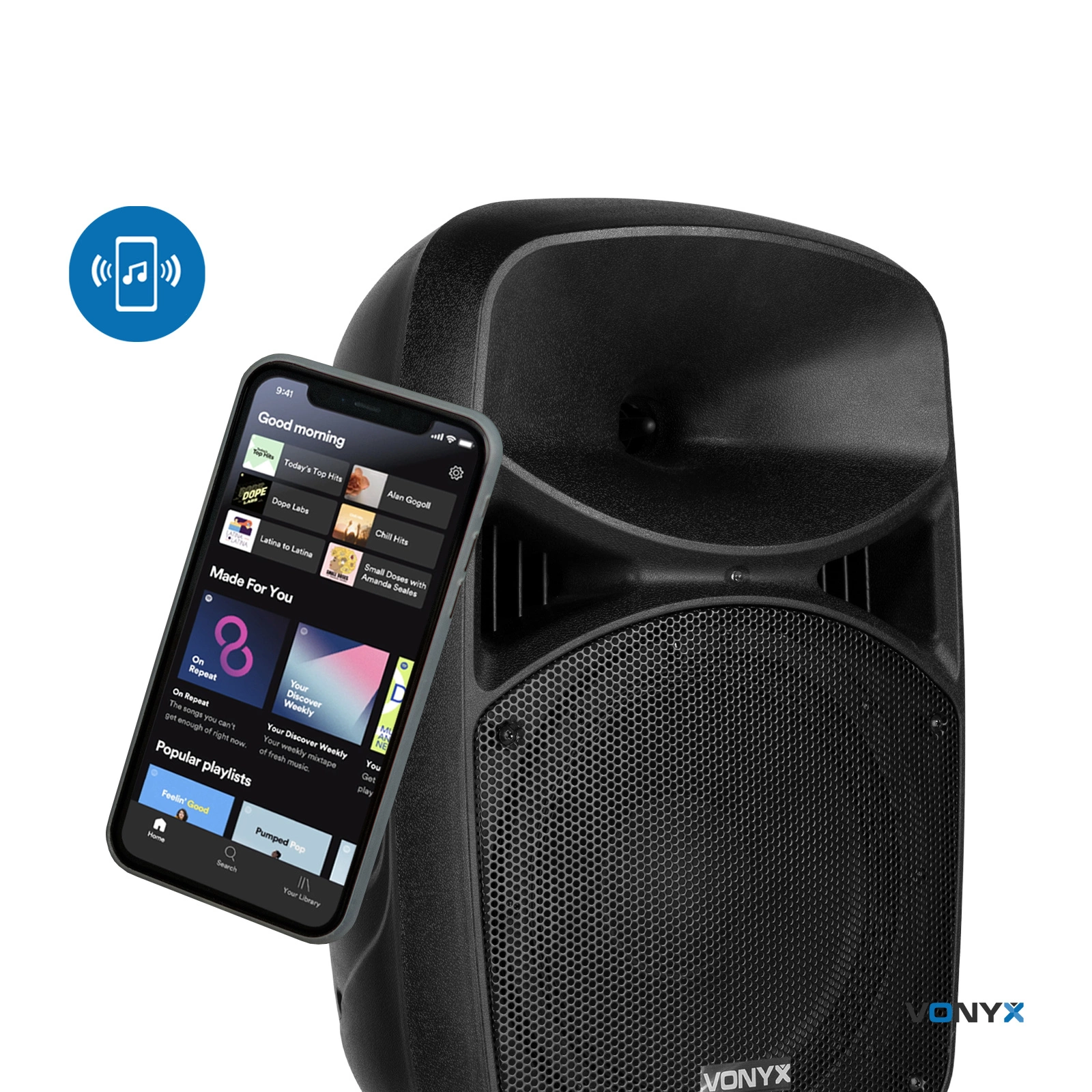 Miła impreza czy wieczór karaoke nie może oczywiście obejść się bez dobrej muzyki. Dzięki mocy 600W VPS102A zapewnia, że niczego Ci nie brakuje pod względem dźwięku. Istnieje kilka opcji wprowadzania muzyki, w tym Bluetooth. Połączenie bezprzewodowe można nawiązać z urządzeniem Bluetooth, po czym muzykę odtwarzaną na sparowanym urządzeniu można usłyszeć przez system dźwiękowy. Innym rozwiązaniem bezprzewodowym jest wewnętrzny odtwarzacz multimedialny MP3. Podłącz pamięć USB lub kartę SD z muzyką MP3 do aktywnego głośnika, a on odtworzy muzykę za Ciebie. Dzięki dołączonemu pilotowi masz pełną kontrolę. W przypadku wszystkich innych opcji dostępne jest wejście liniowe / AUX, do którego można podłączyć mikser, odtwarzacz CD, kontroler DJ itp. Chcesz wykorzystać zestaw jako instalację wokalną? Nie ma problemu! Dołączony mikrofon ręczny umożliwia natychmiastowe rozpoczęcie pracy. Dzięki wbudowanemu efektowi echa wokalom można nadać profesjonalne brzmienie. Dodatkowe złącze mikrofonowe umożliwia podłączenie drugiego mikrofonu (brak w zestawie), dzięki czemu można śpiewać również w parach.