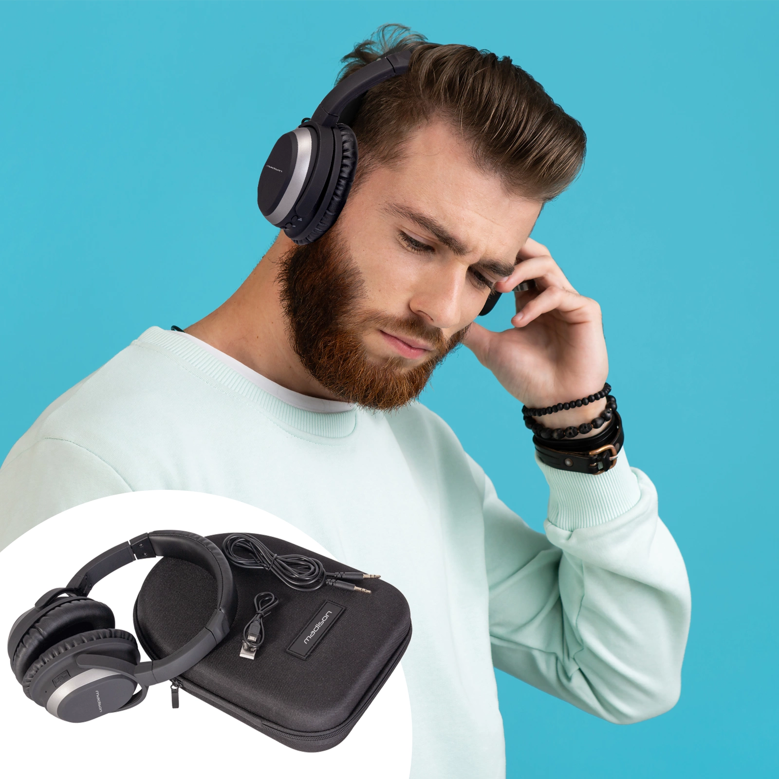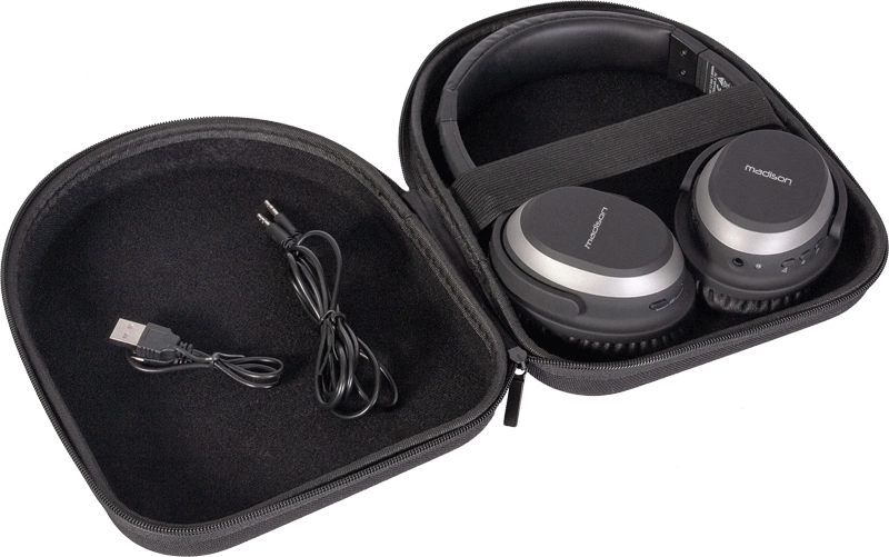 Słuchawki MAD-HNB150 to nowoczesny zestaw do bezprzewodowego odtwarzania muzyki. Produkt poprzez bluetooth 4.1 CRS łączy się z wybranym urządzeniem, może to być telefon, tablet, laptop sprzęt posiadający tę funkcję. Zasięg pomiędzy słuchawkami, a urządzeniem to aż 10 metrów, a funkcja redukcji szumów, zapewnia niezakłóconą przyjemność ze słuchania. Słuchawki zawierają również wbudowany mikrofon do rozmów w trybie głośnomówiącym. W zestawie znajduje się kabel USB, kabel audio i futerał do bezpiecznego transportu.