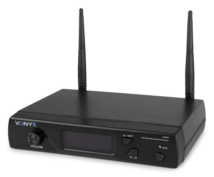 Seria mikrofonów bezprzewodowych Vonyx WM6 zapewnia wyraźną, bezszumową transmisję bezprzewodową i doskonałą reprodukcję dźwięku. Prosta konfiguracja i instalacja umożliwiają natychmiastową transmisję czystego dźwięku. Systemy te działają w paśmie UHF 863-865MHz i oferują 16 kanałów, stosunek sygnału do szumu i są wyposażone w jasny i wyraźny wyświetlacz. Są to świetne urządzenia mikrofonowe na imprezy, przemówienia, karaoke, lekcje sportu, spotkania itp.