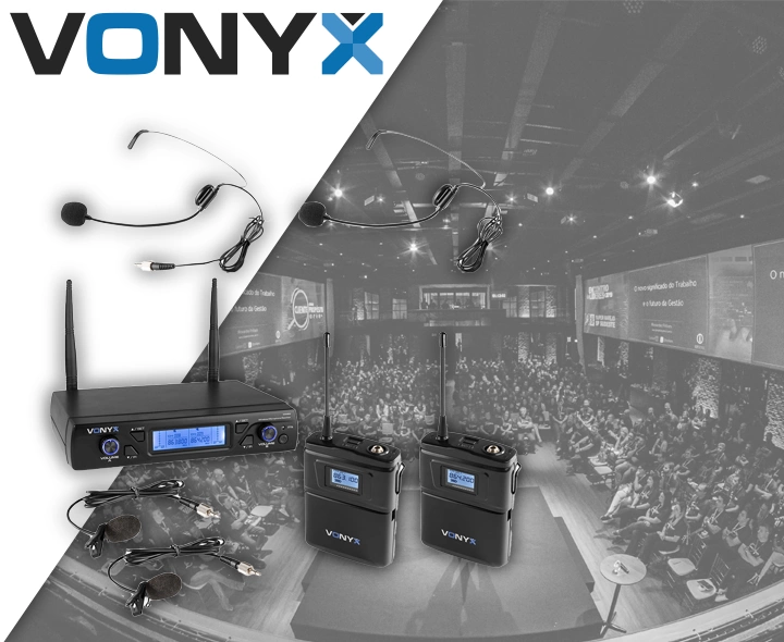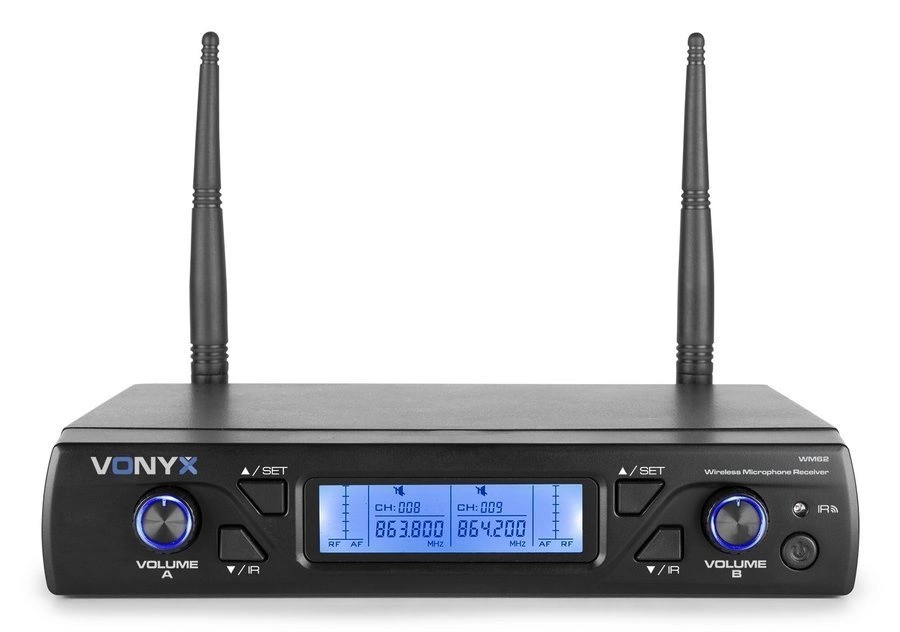 Vonyx WM62B to kompletny system mikrofonów bezprzewodowych z dwoma bezprzewodowymi nadajnikami (bodypackami), w których można wybrać między zestawem słuchawkowym a mikrofonem do krawata. System pracuje na częstotliwości UHF i ma 16 kanałów. Dzięki temu WM62B gwarantuje transfer bez zakłóceń. Interferencja z systemami mikrofonowymi pracującymi w wyższym paśmie częstotliwości UHF nigdy nie stanowi problemu. System jest dostarczany w komplecie z odbiornikiem, który można podłączyć do systemu dźwiękowego za pomocą dostarczonego kabla jack 6,3mm.