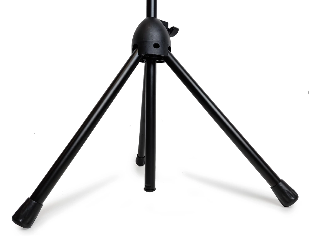 Profesjonalny, estradowy statyw mikrofonowy na stabilnym, stalowym trójnogu.