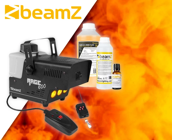 dzięki wytwornicy dymu BeamZ RAGE600LED, możesz maksymalnie wykorzystać efekty świetlne i natychmiast zapewnić dodatkowy efekt. Z pomocą RAGE600LED niesamowite efekty zostaną dodane do Twojego pokazu świetlnego. Po pierwsze, poprzez cząsteczki dymu unoszące się w pomieszczeniu, promienie światła lub efektu lasera stają się widoczne, zapewniając piękny efekt 3D.To, co byłoby na przykład kropką na ścianie bez maszyny do dymu, teraz staje się prawdziwym światłem lub wiązką laserową. Dlatego nie lekceważ efektu wyrzutni dymu, ona naprawdę daje ogromny impuls do Twojego pokazu świetlnego. Po drugie, RAGE600LED jest wyposażony w pomarańczowe/ bursztynowe diody LED, które zapewniają piękny efekt płomienia. Gdy tylko dym wydostaje się z maszyny, jest on oświetlany przez diody LED, tworząc piękny efekt płomienia.