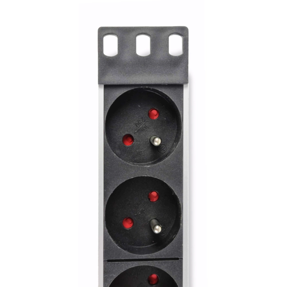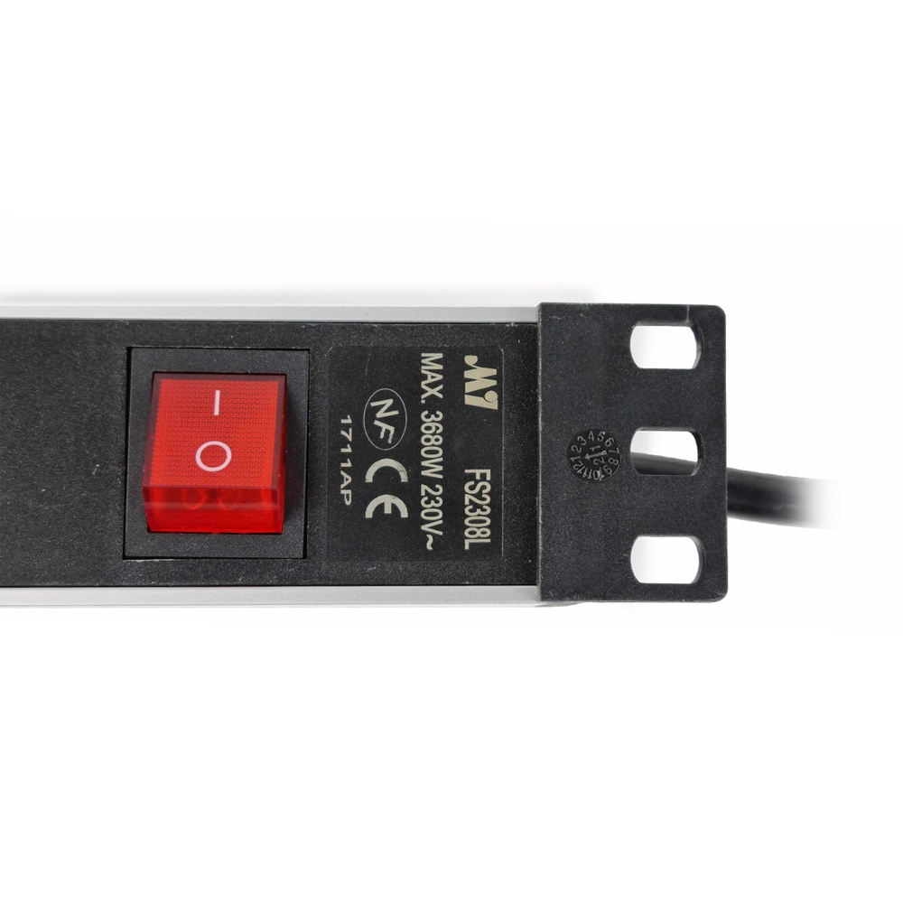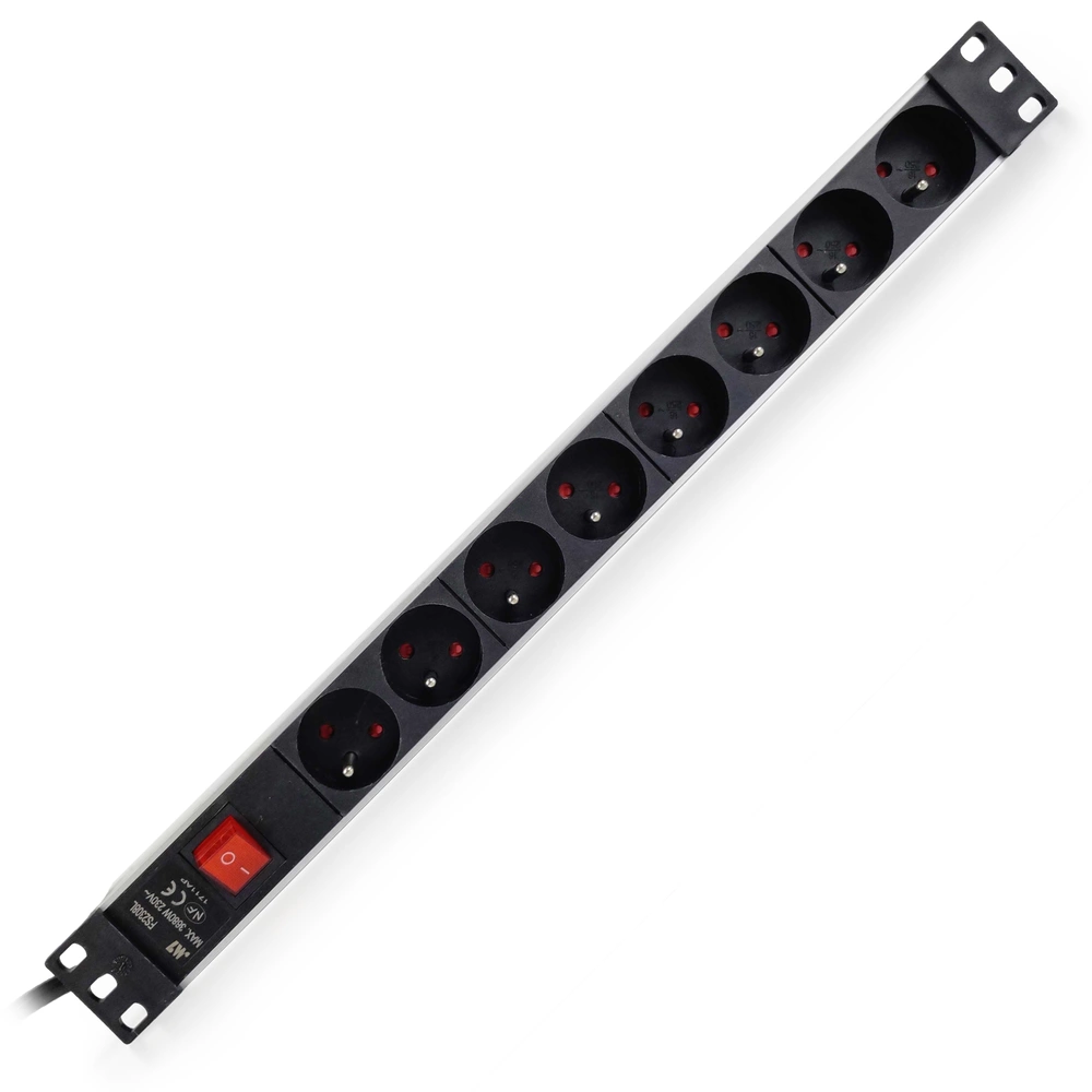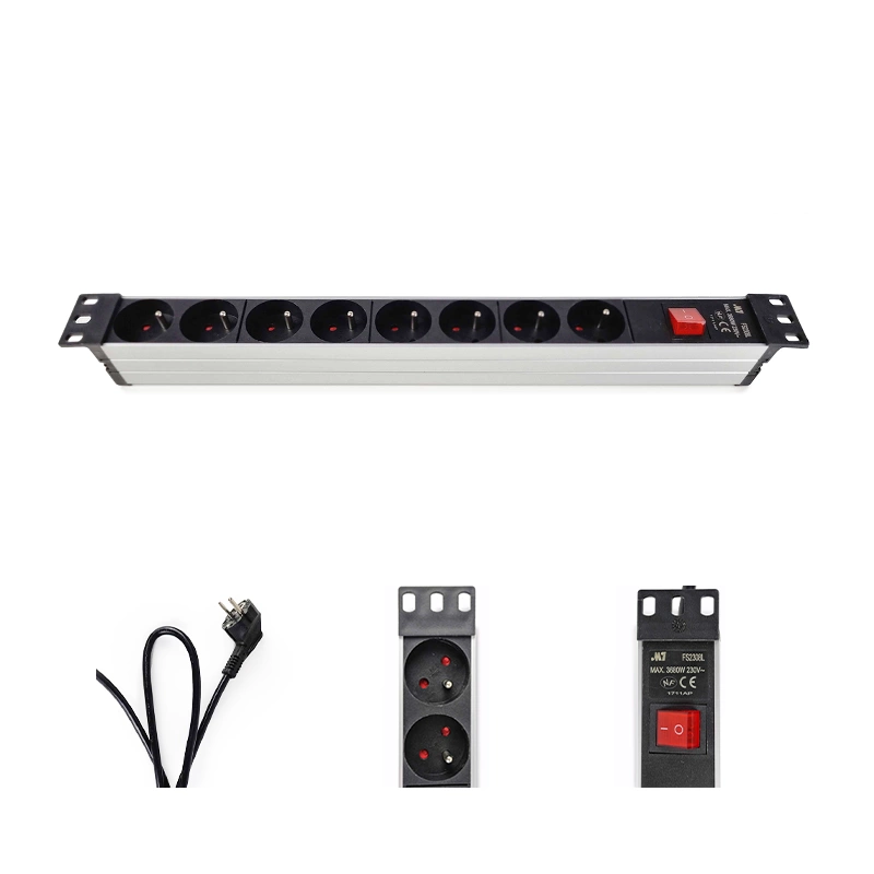 - Listwa, panel zasilający 19" z 8 wyjściami sieciowymi z uziemieniem.
