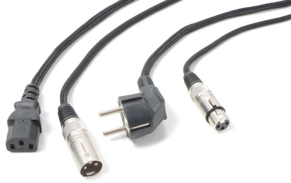 - Wtyki Schuko / IEC i XLR (XLR żeński / schuko męski - XLR męski / IEC żeński)