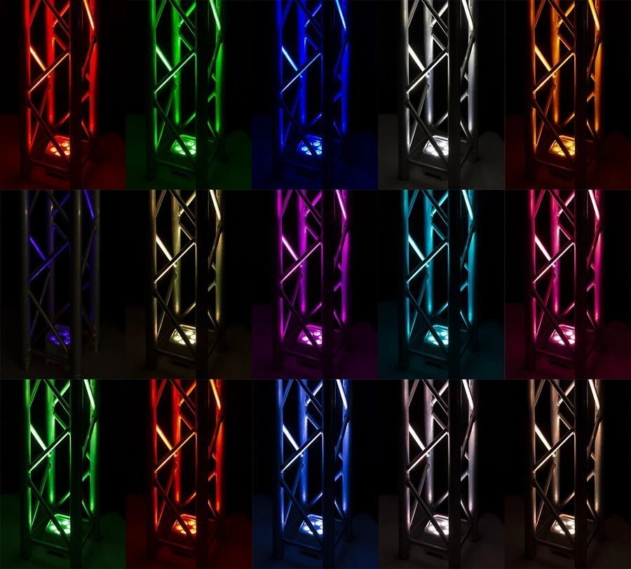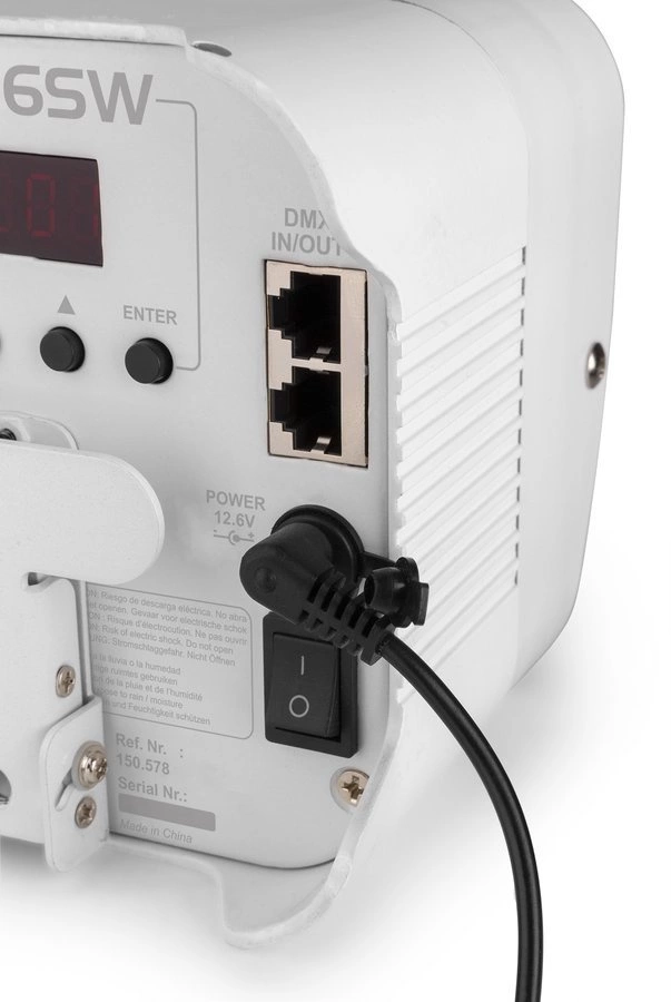 Profesjonalny bezprzewodowy reflektor od marki BeamZ. Urządzenie umożliwia do wykorzystania oprócz standardowego RGB (czerwony, zielony, niebieski) także kolory amber (bursztynowy), biały oraz efekt UV - odznaczający się na białych powierzchniach. Oświetlacz bateryjny posiada wbudowany odbiornik bezprzewodowy DMX. Reflektor ma zaprogramowane automatyczne programy oraz możliwość sterowania dźwiękiem lub kontrolerem DMX.