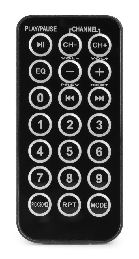 - Wbudowany odtwarzacz MP3 – obsługuje USB i karty SD, z wyświetlaczem ID3 (tytuł/wykonawca).