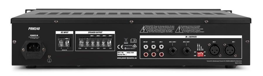 Power Dynamics PRM240 to profesjonalny wzmacniacz strefowy 100V o mocy 240W, idealny do systemów nagłośnienia w przestrzeniach komercyjnych i przemysłowych. Dzięki wielu funkcjom i prostemu sterowaniu, doskonale sprawdzi się w biurach, sklepach, magazynach, restauracjach, halach produkcyjnych i szkołach.