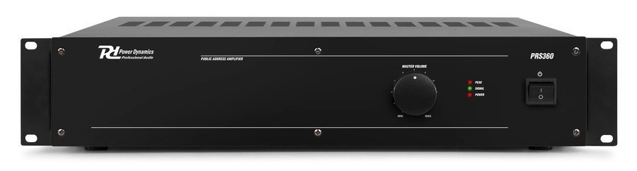 to rozwiązanie, gdy wzmacniacz 100V nie ma wystarczającej mocy lub gdy chcesz rozszerzyć instalację 100V o dodatkowe głośniki. PRS360 może być również używany w systemach 100V, które nie zostały jeszcze skonfigurowane, gdzie wymagana jest duża moc. Ale PRS360 nadaje się nie tylko do zwiększania mocy. W rzeczywistości mógłby również służyć jako samodzielny wzmacniacz 100V. Z samym tylko pokrętłem głośności niewiele może się pomylić w ustawieniach, aby każdy mógł z nim pracować. Wadą jest to, że do PRS360 można podłączyć tylko jedno źródło dźwięku.