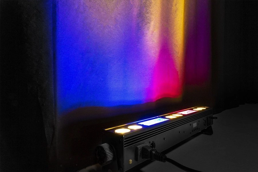Dwie oddzielnie sterowane sekcje listwy LED są wyposażone w diody LED RGB. Te diody LED są w rzeczywistości diodami LED 3 w 1, co oznacza, że każda dioda LED ma 3 kolory, a mianowicie czerwony, zielony i niebieski (RGB). Mieszając te kolory, diody LED są w stanie tworzyć wszelkiego rodzaju inne kolory, takie jak żółty i fioletowy. Grając z intensywnością różnych kolorów, możliwe są różne warianty kolorystyczne. Dzięki BeamZ LSB340 pomieszczenie jest szybko oświetlane kolorowym światłem, które poprawia atmosferę.