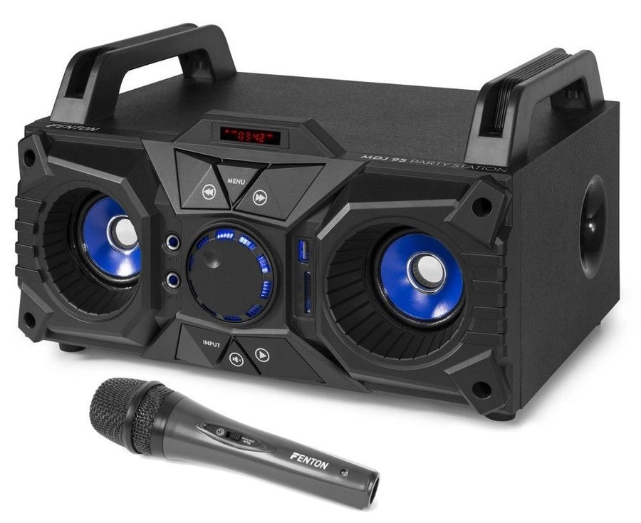 MDJ95 firmy Fenton to wszechstronny głośnik imprezowy, który zawiera wszystkie potrzebne najważniejsze funkcje. Odtwarzana muzyka, jest wysokiej jakości oraz odpowiedniej głośności. Oba głośniki niskotonowe są kontrolowane przez wewnętrzny wzmacniacz. MDJ95 jest wyposażony w Bluetooth i odtwarzacz multimedialny USB/ SD, dzięki czemu nigdy nie zabraknie Ci ulubionej muzyki. Możesz także podłączyć dwa mikrofony, co jest idealne na wieczór karaoke. Krótko mówiąc, posiadanie tego odtwarzacza sprawia wiele przyjemności, będzie Twoim towarzyszem na każdym spotkaniu towarzyskim czy zorganizowanej imprezie.