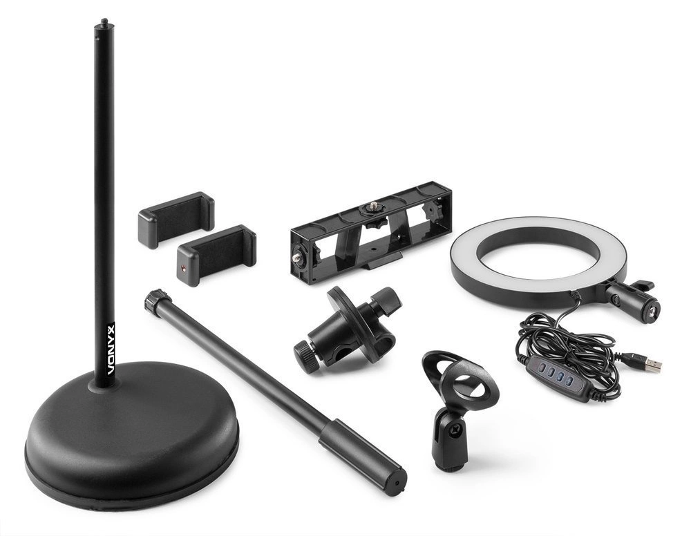 Stoi na poręcznym statywie i posiada wiele zastosowań dzięki multi-funkcyjności. Statyw wyposażono w dwa uchwyty na smartfony, co zapewnia odpowiedni kąt mocowania. Dodatkowo mamy do dyspozycji uchwyt aby zamontować zewnętrzny mikrofon dla lepszej jakości dźwięku nagrań wideo. Zawsze będziesz mieć odpowiednie światło, ponieważ lampa pierścieniowa posiada 3- stopniową regulowaną temperaturę barwową oraz 10 stopniowe natężenie światła. Ta lampa pierścieniowa Vonyx jest idealna do makijażu, filmów, vlogów, samouczków, rozmów wideo, filmów Snapchat i TikTok.