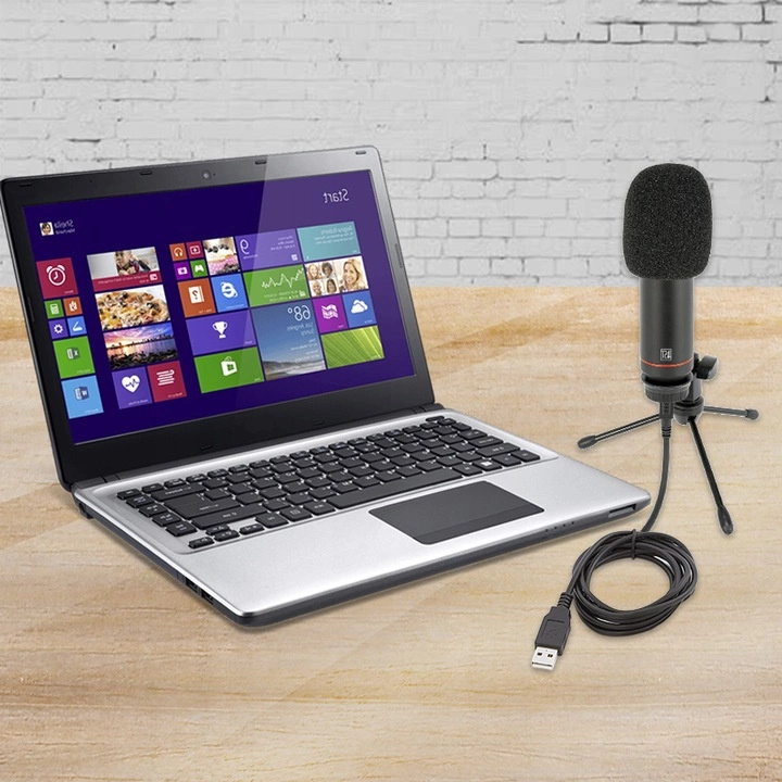 - Dostarczany z przewodem USB, uchwytem mikrofonowym, gąbką i podstawą stołową