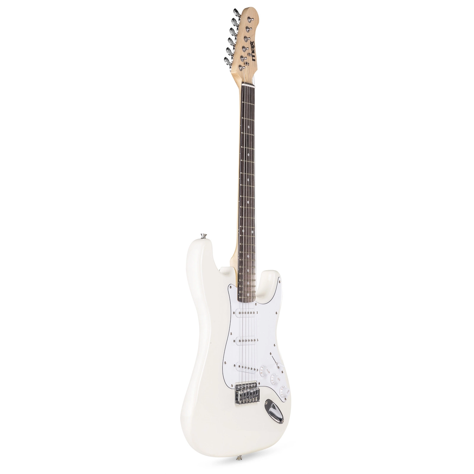 Ta gitara elektryczna 4/4 typu Stratocaster to pełnowymiarowy model, idealny zarówno dla początkujących, jak i bardziej zaawansowanych gitarzystów. Doskonała do nauki, ćwiczeń i gry na scenie – od 10 roku życia wzwyż.