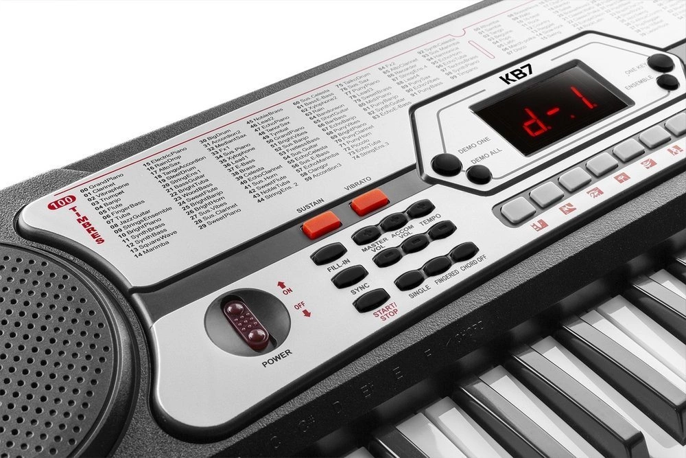 MAX KB7 to wspaniały keyboard dla dzieci i dorosłych, który pozwala rozpocząć naukę gry na klawiszach/ pianinie. MAX KB7 jest intuicyjny, co ułatwia obsługę. Keyboard jest gotowy do gry niemal natychmiast po rozpakowaniu. Posiada wbudowane głośniki dzięki czemu możesz grać dla większej publiki. Dodatkowym atutem jest również uchwyt na smartphone lub tablet, dzięki czemu możesz stawiać pierwsze kroki czerpiąc pomoc i inspirację z szerokiego wachlarza aplikacji dostępnych na każde urządzenie mobilne.