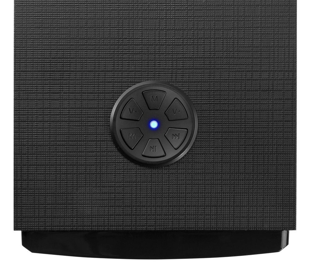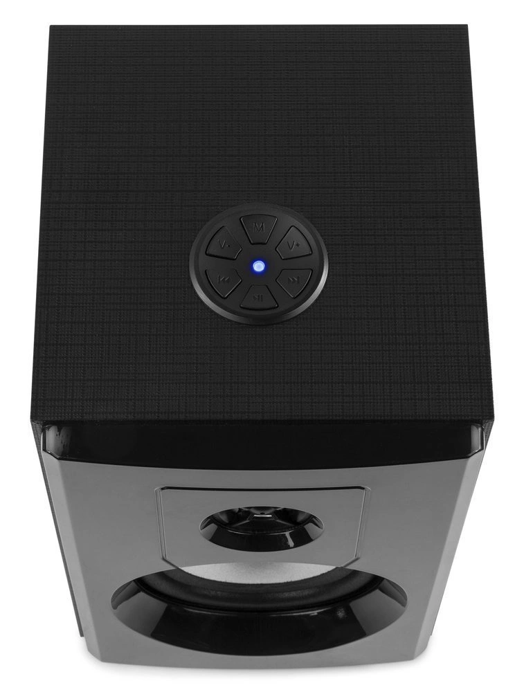 Kolejną przydatną opcją zestawu głośników SHF404B jest wewnętrzny odtwarzacz MP3. Włóż pamięć USB z muzyką MP3 do aktywnego głośnika, a wewnętrzny odtwarzacz będzie odtwarzał muzykę bezpośrednio z pamięci USB. Dla wszystkich innych źródeł dźwięku, takich jak odtwarzacz CD lub komputer bez Bluetooth, dostępne jest wejście RCA (tulipan). Zewnętrzne źródło można podłączyć do głośnika ustawionego na tym wejściu za pomocą kabla audio.