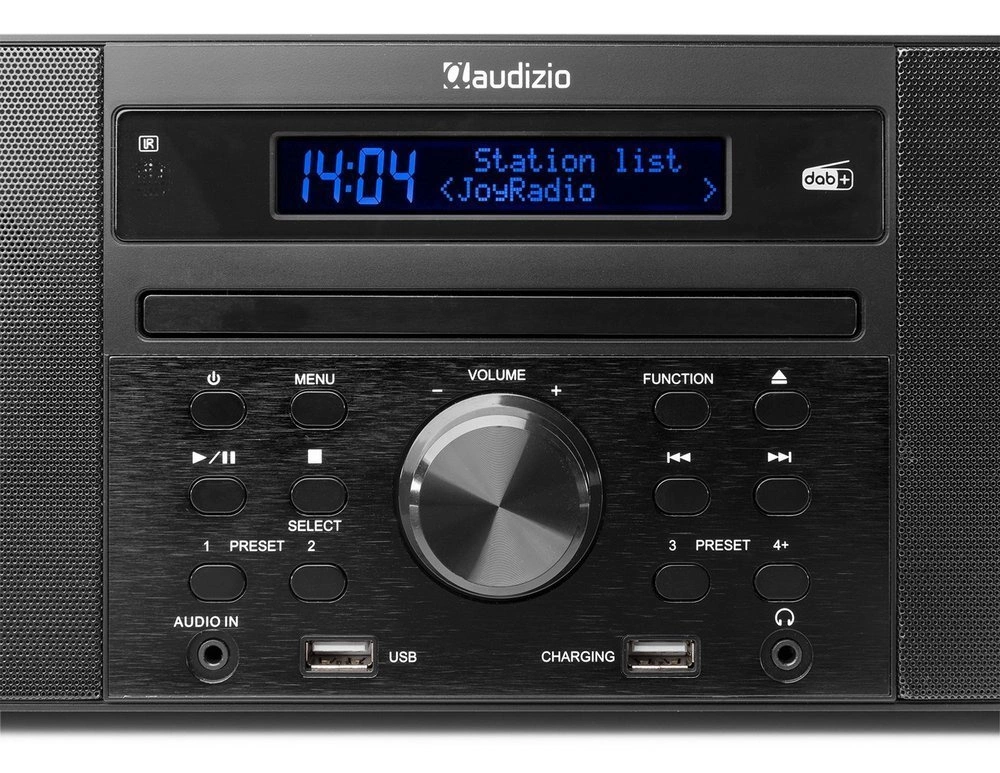 Prato firmy Audizio to zestaw typu wszystko w jednym mikroukładzie/ stereo do użytku w wielu miejscach w domu, biurze itp. Radioodtwarzacz jest wyposażony w radio DAB, Bluetooth, odtwarzacz MP3 USB, odtwarzacz CD i wejście AUX, dzięki czemu masz wiele okazji, aby cieszyć się ulubioną muzyką. Pomimo wielu opcji jest to stosunkowo małe radio, co sprawia, że jest przyjemnym i idealnym zamiennikiem starej wieży stereo lub radiobudzika. Do zestawu dołączony jest pilot zdalnego sterowania zapewniający optymalną wygodę użytkowania. Dzięki złączu USB do ładowania możesz naładować telefon lub tablet za pomocą Prato.