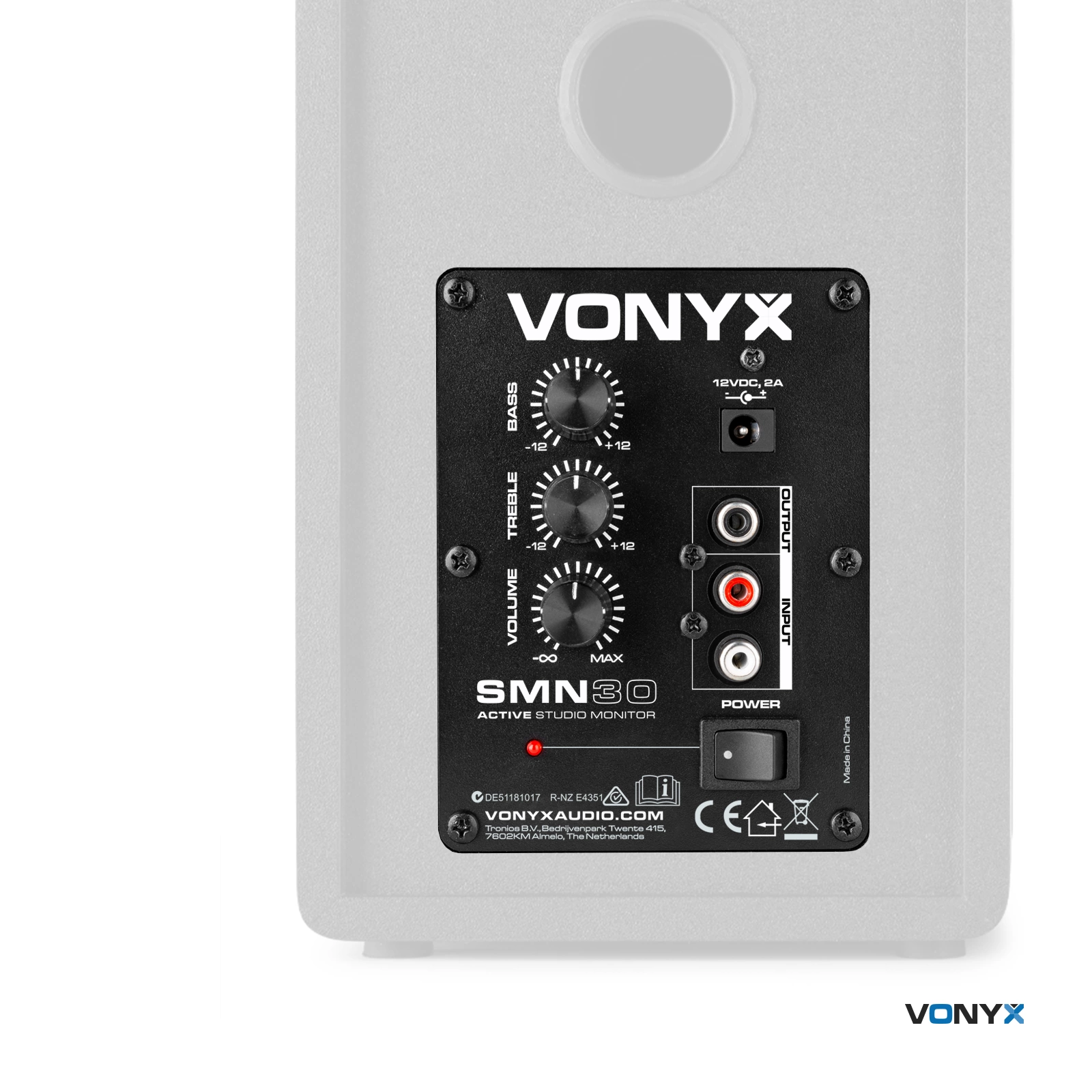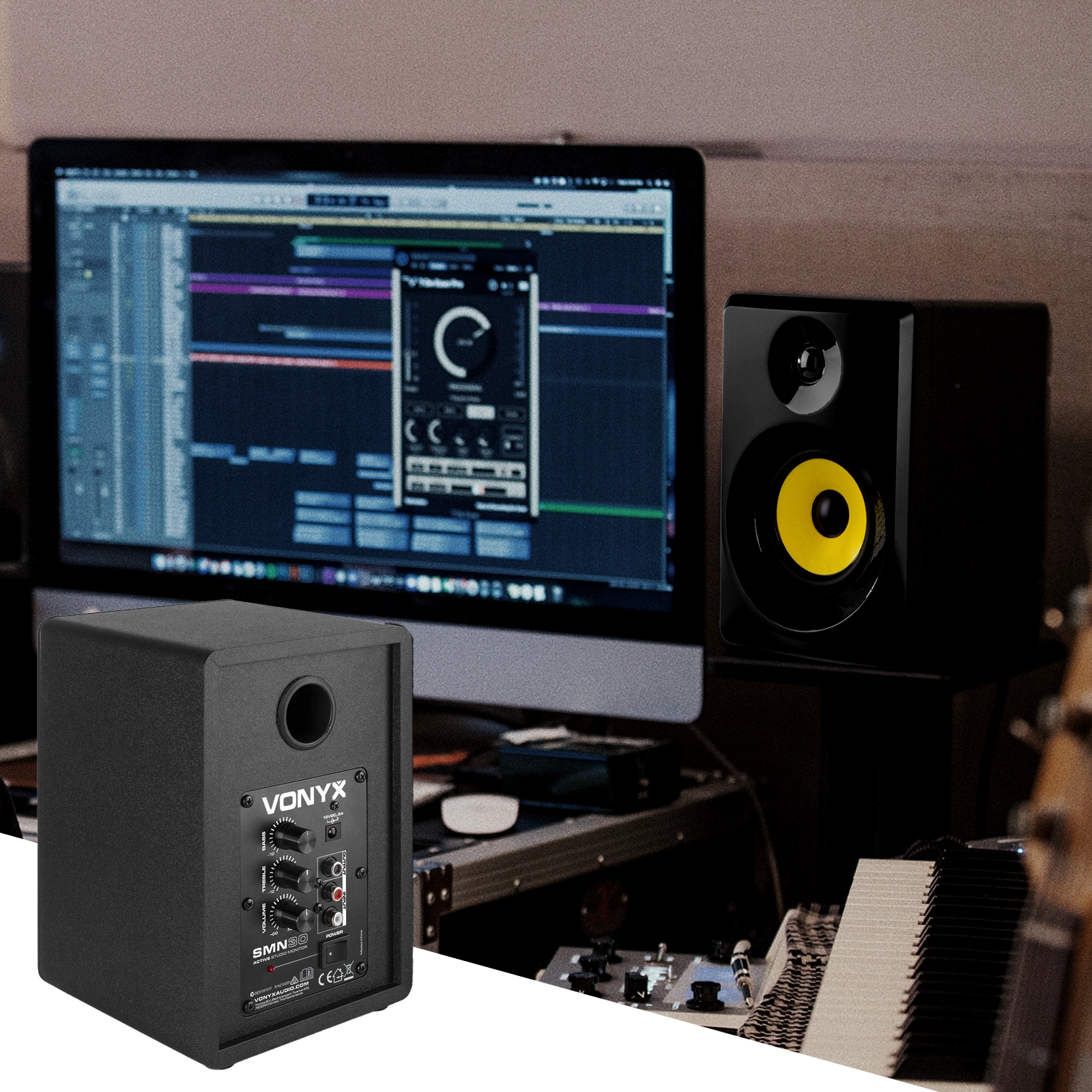 Te SM Active Studio Monitors to profesjonalne monitory studyjne, które nadają się również do zastosowań multimedialnych. Głośniki te są zaprojektowane tak, aby zapewnić płaską charakterystykę częstotliwościową podczas nagrywania, miksowania i masteringu (w domu). Elementy sterujące głośnością, basami i sopranami znajdują się na tylnym panelu w celu regulacji w oparciu o osobiste preferencje. Seria SM posiada wzmacniacze analogowe wbudowane w lewy głośnik, podczas gdy prawy głośnik jest pasywny, więc konfiguracja jest prosta. Wystarczy podłączyć lewy głośnik do zasilania sieciowego i podłączyć dołączony przewód głośnikowy od lewej do prawej. Te głośniki Vonyx SM Active Studio Monitor zapewniają nowy poziom wydajności w niedrogich monitorach studyjnych.