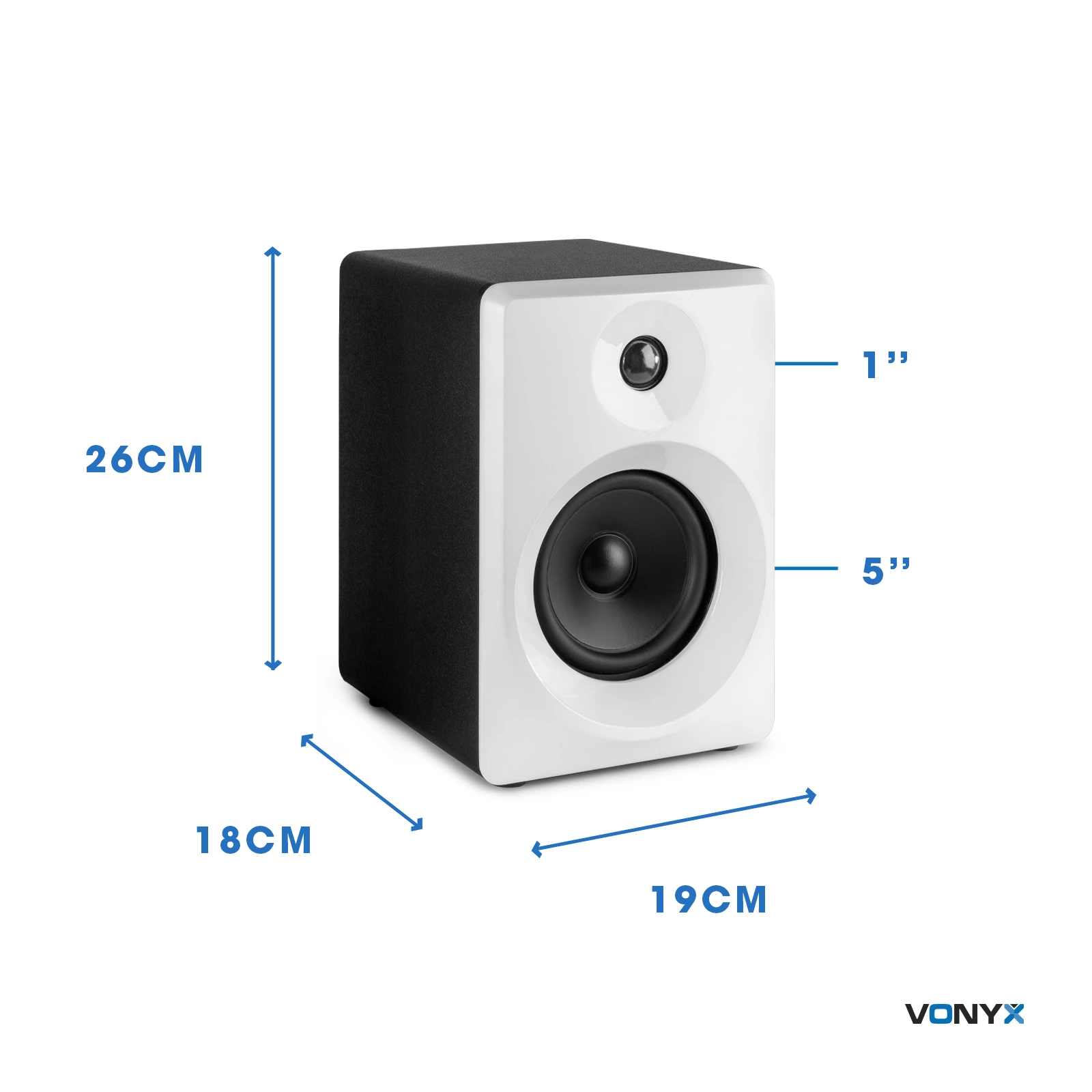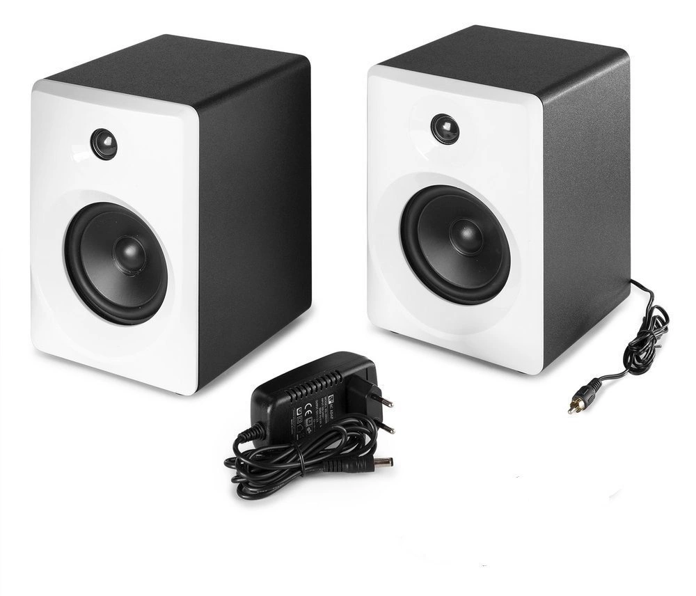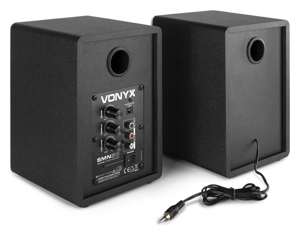 Vonyx SMN50W to zestaw dwóch głośników studyjnych. Wzmacniacz jest wbudowany w jeden z głośników, dzięki czemu można podłączyć zestaw bezpośrednio do komputera, laptopa, miksera, kontrolera DJ-a itp. Monitory są zaprojektowane tak, aby zapewnić płaską charakterystykę częstotliwościową, podczas nagrywania, miksowania i masteringu (w domu). SMN50W jest idealnym zestawem dla początkującego DJ-a lub producenta. Kompaktowy rozmiar ułatwia postawienie głośników np. na biurku.