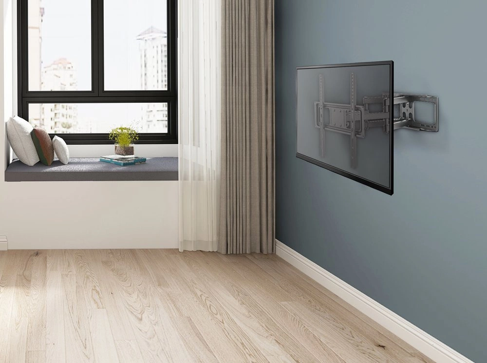 Obrotowy uchwyt ścienny FMB60 jest przystosowany do większości płaskich telewizorów o przekątnej 32–65 cali i wadze do 40 kg. Ten wytrzymały uchwyt ścienny wystaje na 464 mm od ściany i umożliwia pełen ruch. Pełny ruch zapewnia maksymalną elastyczność - pochyla i obraca telewizor w celu łatwego oglądania z dowolnego miejsca w pokoju. Regulacja wypoziomowania po montażu zapewnia idealne ustawienie telewizora na ścianie. Zintegrowany system zarządzania kablami zapewnia porządek i ochronę kabli. Zgodność z VESA 200x 200, 200x 300, 200x 400, 300x 300, 300x 400, 400x 200, 400x 300 i 400x 400.