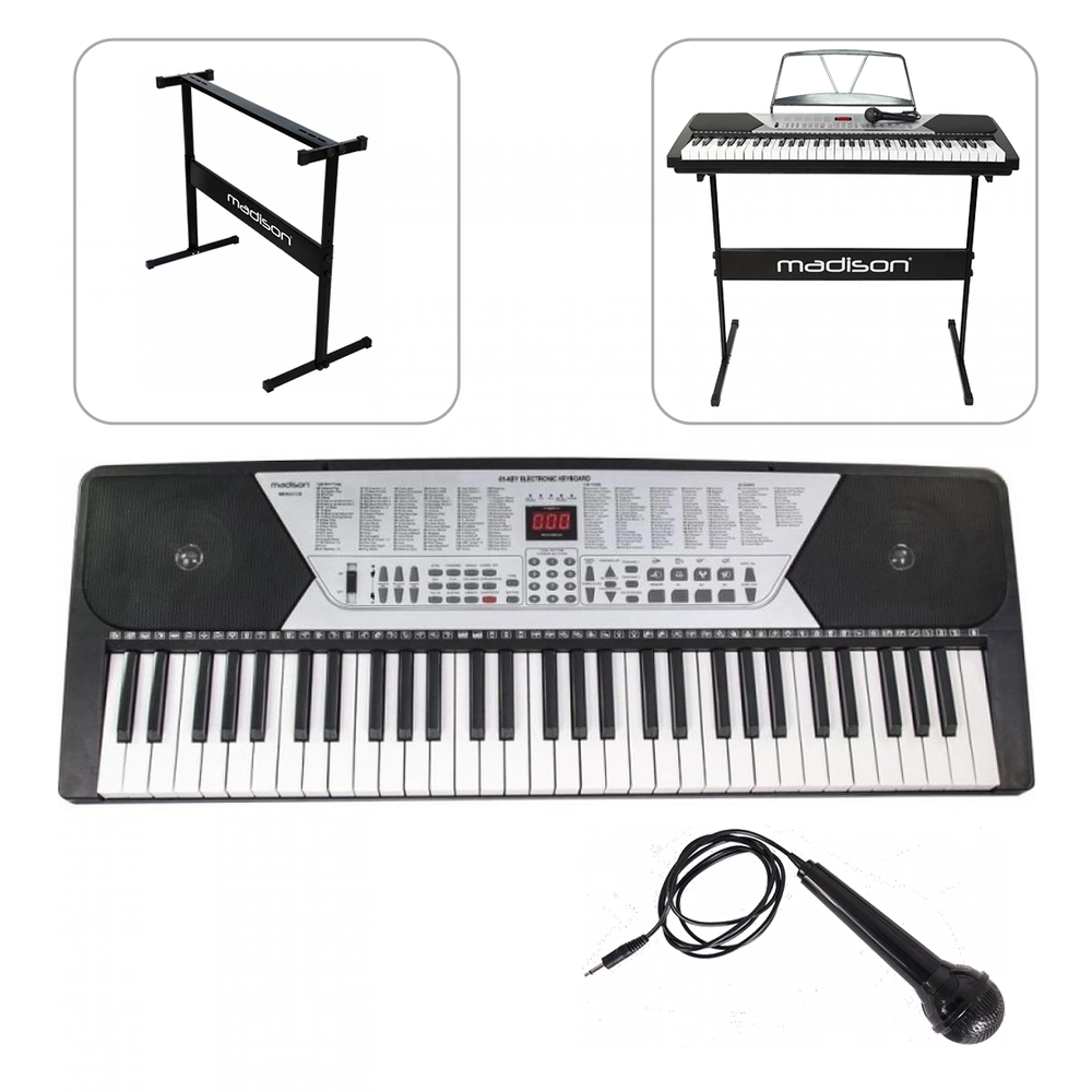 - Keyboard 61 klawiszy w zestawie ze statywem i mikrofonem.