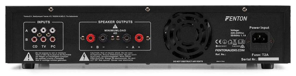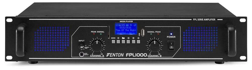Seria wzmacniaczy cyfrowych Fenton FPL posiada wbudowaną technologię BT. Możliwość bezprzewodowego przesyłania strumieniowego umożliwia podłączanie i strumieniowe przesyłanie dźwięku z ulubionych urządzeń, takich jak smartfony i tablety. Ten wzmacniacz z w pełni zintegrowanym odtwarzaczem multimedialnym odtwarza w prosty sposób muzykę w formacie MP3 z pamięci USB lub karty SD i wykorzystuje najnowocześniejszą technologię wzmacniania, co zapewnia krystalicznie czysty i mocny dźwięk; urządzenie, którego nie powinno zabraknąć w żadnej instalacji DJ-skiej! Wzmacniacz posiada kilka wejść stereo RCA dla telewizji, odtwarzacza CD, komputera, BT itp. Z przodu znajduje się gniazdo jack 3,5 mm umożliwiające podłączenie zewnętrznego odtwarzacza audio. Wyposażony w nowoczesny panel przedni podświetlany diodami LED w kolorze niebieskim oraz wyświetlacz LCD z matrycą punktową i znacznikiem ID-3.