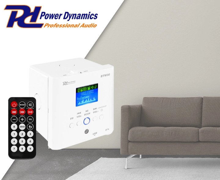 Power Dynamics BTW30 to kompaktowy wzmacniacz stereo, który można wbudować w ścianę. Wzmacniacz posiada wszystkie niezbędne funkcje, takie jak Bluetooth, odtwarzacz MP3 i radio FM. Można połączyć go z większością smartfonów i tabletów z połączeniem BT.