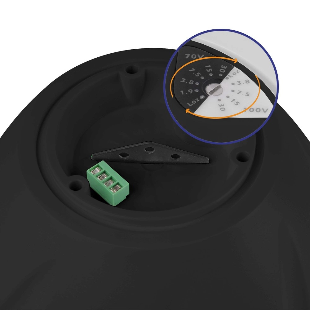 Dzięki Power Dynamics PDS40B możesz w schludny sposób zapełnić pomieszczenia z wysokim sufitem w stylowy dodatek, z którego wydobywają się dźwięki muzyki. Czarny głośnik wiszący, będzie elegancko wyglądał w każdym wnętrzu. Ponieważ kabel o długości 2,2 metra jest wewnętrznie wyposażony w stalowy rdzeń, nie jest konieczne stosowanie osobnego kabla stalowego i kabla sygnałowego, dzięki czemu wszystko wygląda bardzo schludnie i szczelnie wykończone. Głośnik nadaje się do użytku w systemach 100V, ale można go również podłączyć do konwencjonalnych wzmacniaczy z ustawieniem 8Ohm. PDS40B nadaje się zarówno do muzyki, jak i mowy i może być używany w kościołach, restauracjach, sklepach itp.