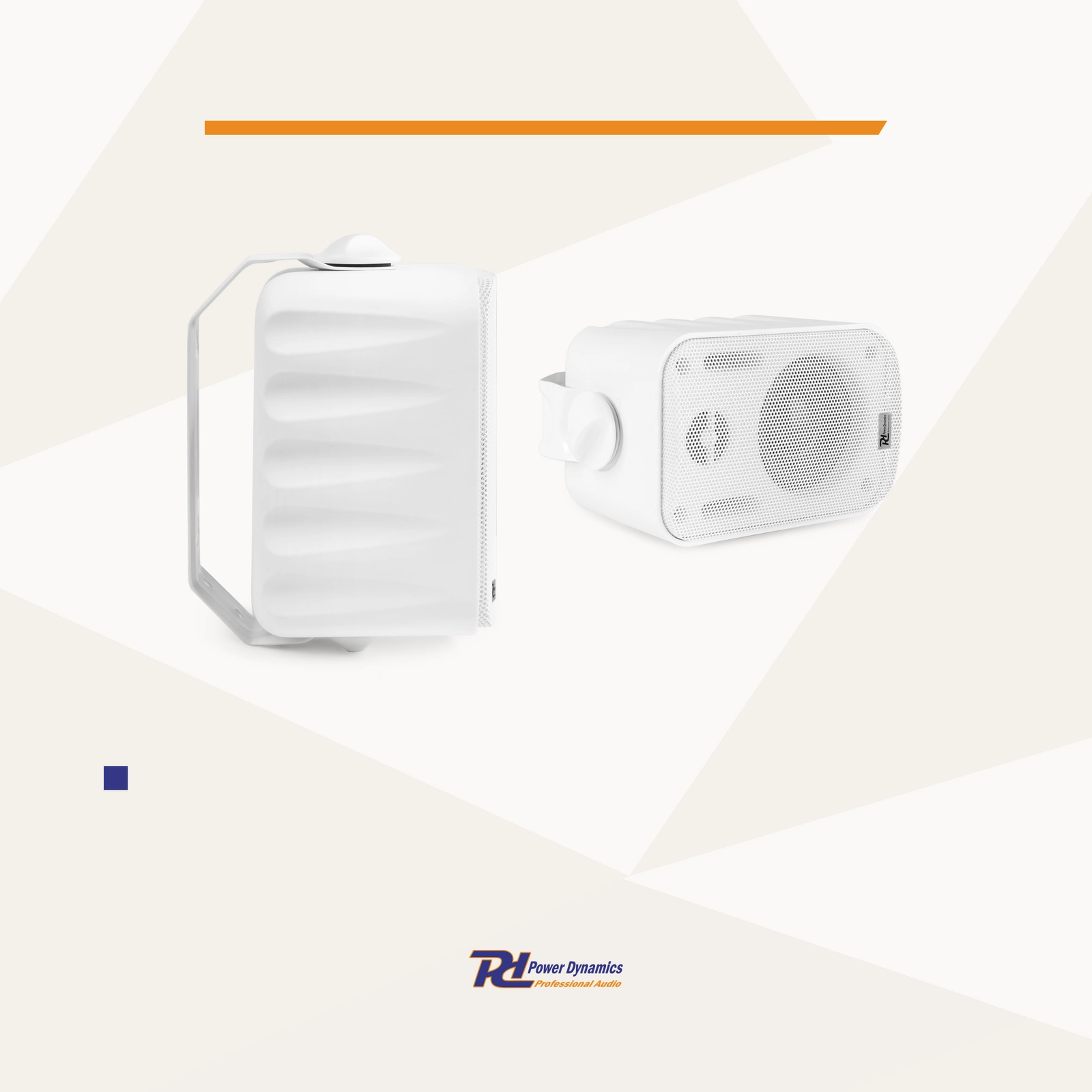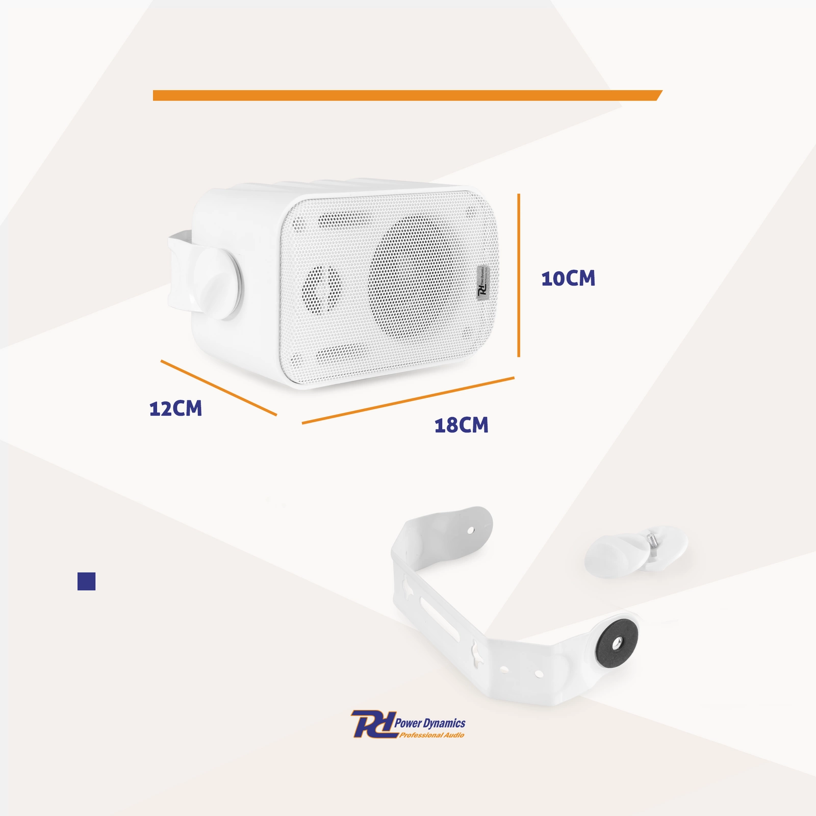 Kompaktowy zestaw 2szt głośników Power Dynamics BGO30 do odtwarzania muzyki w tle w pomieszczeniach lub na zewnątrz