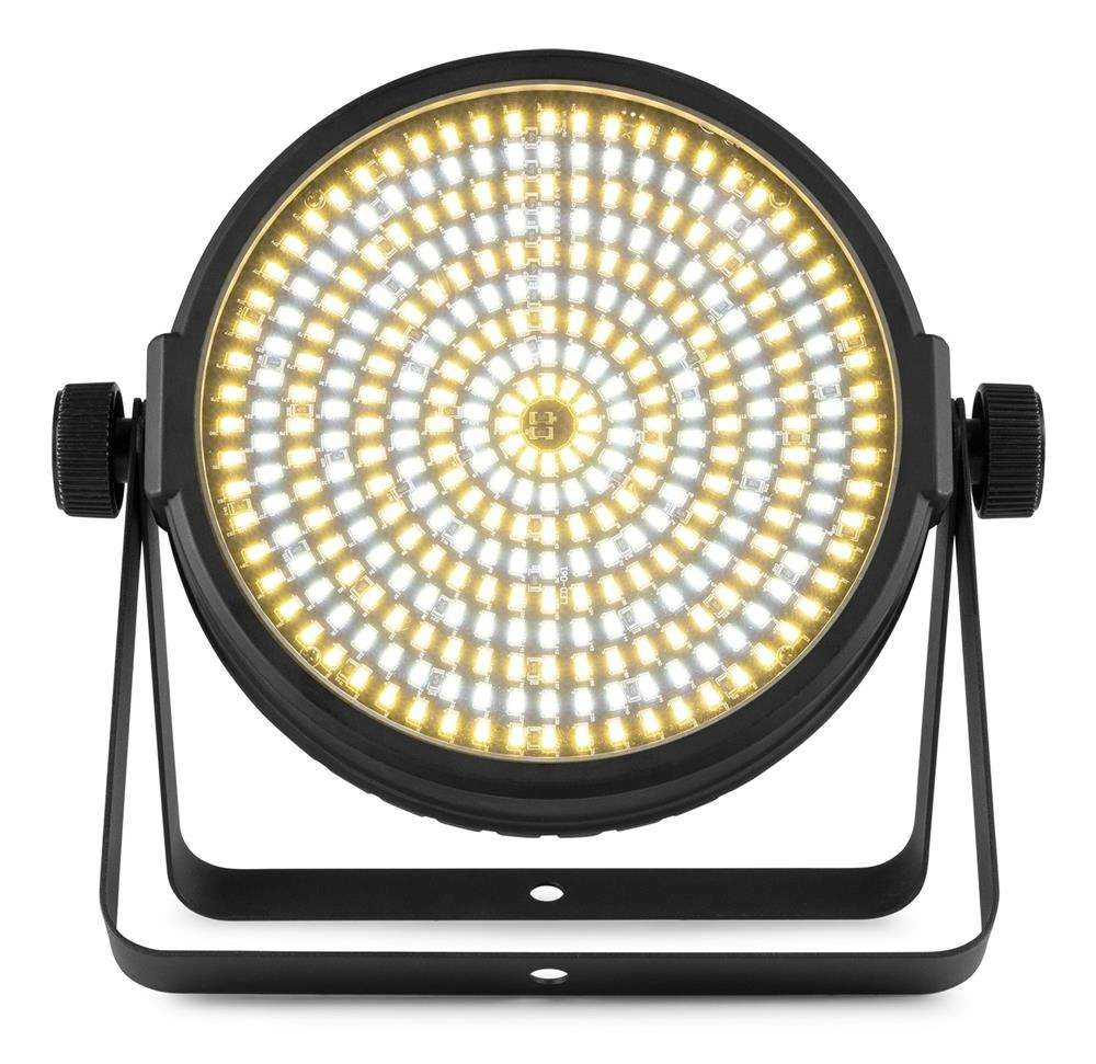 BT430 to smukłe urządzenie, które zapewnia efekt stroboskopu o wysokiej intensywności, chłodno-białej lub ciepłej bieli. Oprawy te są wyposażone w wejście/wyjście zasilania do łączenia szeregowego wielu jednostek. Wszystkie modele BT4 mają wstępnie ustawione programy, które mogą być używane w trybie samodzielnym, a każdy pierścień diod LED jest indywidualnie sterowany przez DMX. To samo można zrobić w trybie samodzielnym za pomocą dostarczonego pilota. Solidna obudowa ABS i podwójna podstawa sprawiają, że oprawy BT Par nadają się również do użytku mobilnego, ponieważ są lekkie i łatwe w konfiguracji. Idealny dla DJ-ów, zespołów i innych miejsc, które chcą uzyskać wspaniały efekt stroboskopowy.