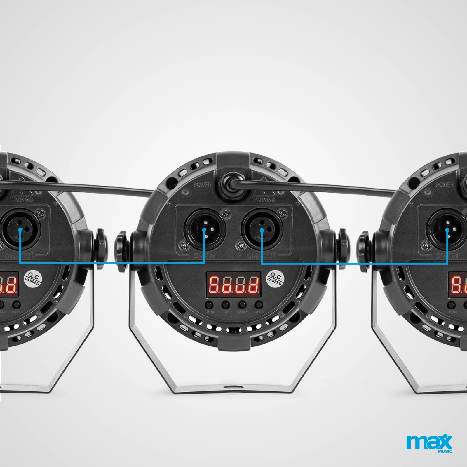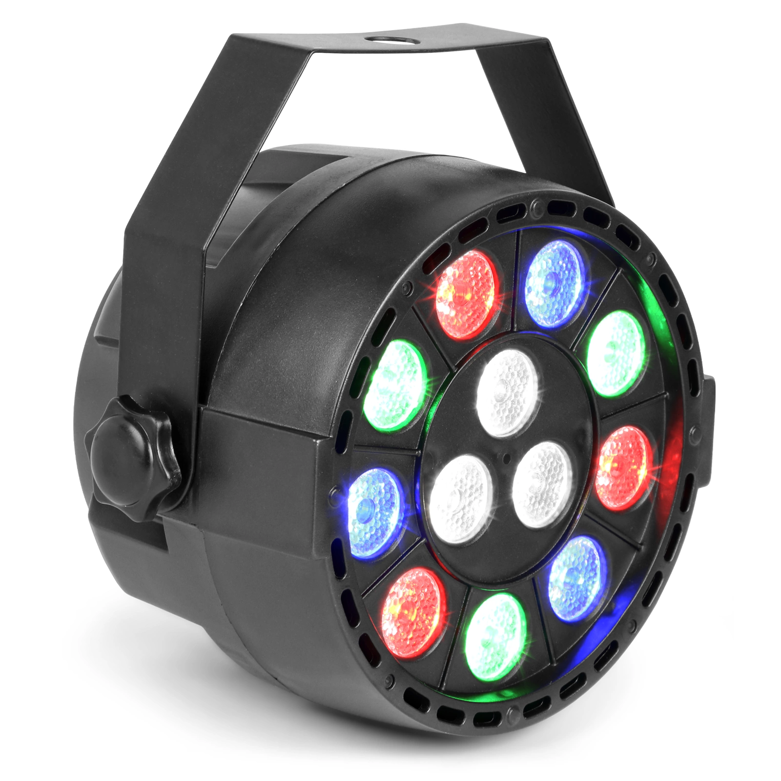 MAX Party PAR z 12 diodami LED RGBW o mocy 1 W oferuje niewiarygodną emisję światła w bezkonkurencyjnej cenie. Świetne kolory RGBW mieszające światło zapewnią ci wspaniałą wizualną ucztę. Obudowa wykonana z wytrzymałego tworzywa sztucznego zapewnia wspaniałe wrażenia, jest wyjątkowo funkcjonalna i mocna. Pełna integracja DMX, funkcja Sound-to-Light za pośrednictwem zintegrowanego mikrofonu, a także tryb Master/Slave spełnią wszystkie Twoje potrzeby!