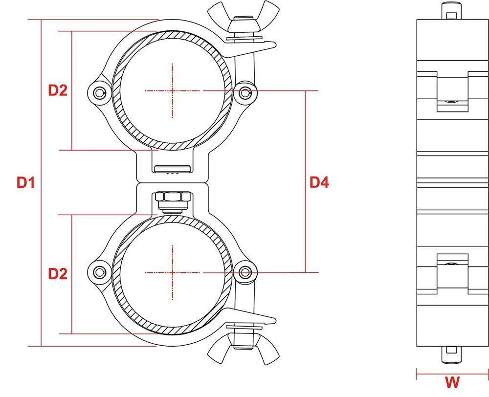 Wytrzymały uniwersalny aluminiowy smukły łącznik obrotowy do uchwytów do montażu na rurach i kratownicach. Łącznik obrotowy zapewnia mocne mocowanie między sąsiednimi prętami, umożliwiając jednocześnie ruch o 360 stopni. Konstrukcja aluminiowa o wysokiej wytrzymałości.