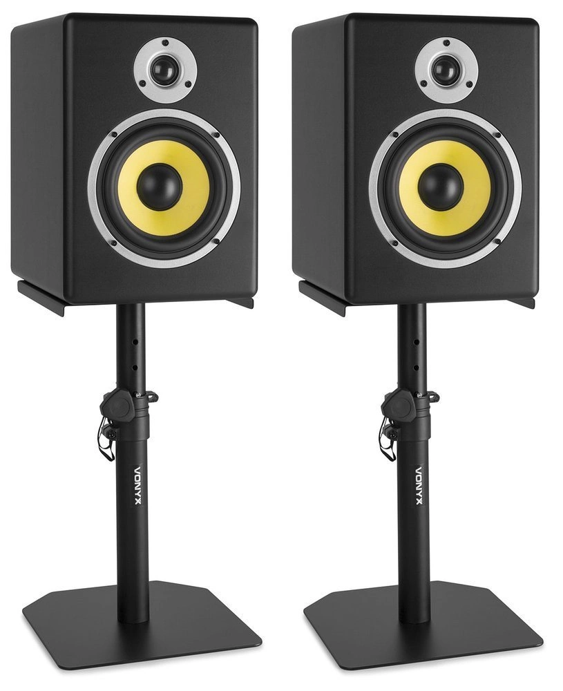 Stabilny i wytrzymały statyw pod monitor Vonyx SMS10 to propozycja dla wszystkich, którzy poszukują praktycznego i zarazem eleganckiego rozwiązania do swojego studia, sali odsłuchowej, pracowni czy do domu. Proponowany statyw przeznaczony jest do ustawienia na biurku, stole lub szafce. Posiadaja możliwość regulacji wysokości pomiędzy 34cm, a 49cm. Przeznaczony jest do monitorów o max. średnicy głośnika 8". Statyw jest odpowiednio wyprofilowany, zabezpieczenie każdej z wysokości uniemożliwia zsuwanie się głośnika. Posiada dodatkowo antypoślizgowe zabezpieczenia góry oraz nóżek.
