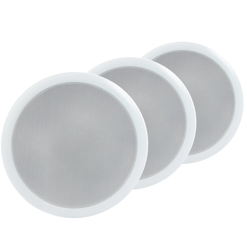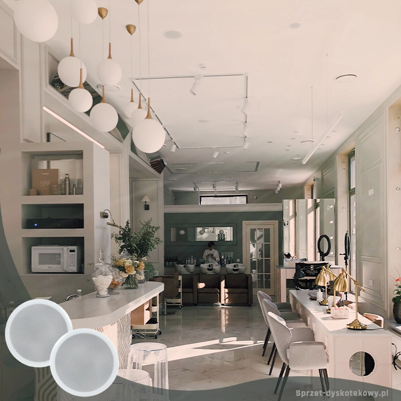 Komercyjny system głośników sufitowych z instalacją liniową 100 V, w tym wzmacniacz z mikserem Bluetooth i kabel głośnikowy. Ten wstępnie skonfigurowany system nagłośnieniowy z podkładem muzycznym jest idealnym rozwiązaniem dla restauracji, barów, pubów, kawiarni, sklepów i biur.