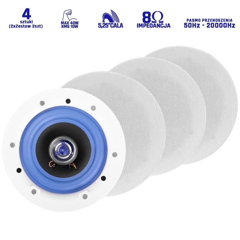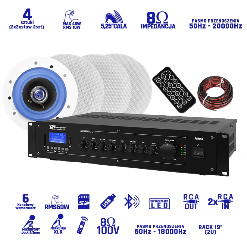 Zestaw: 2x głośniki sufitowe 5,25”+ wzmacniacz+ okablowanie