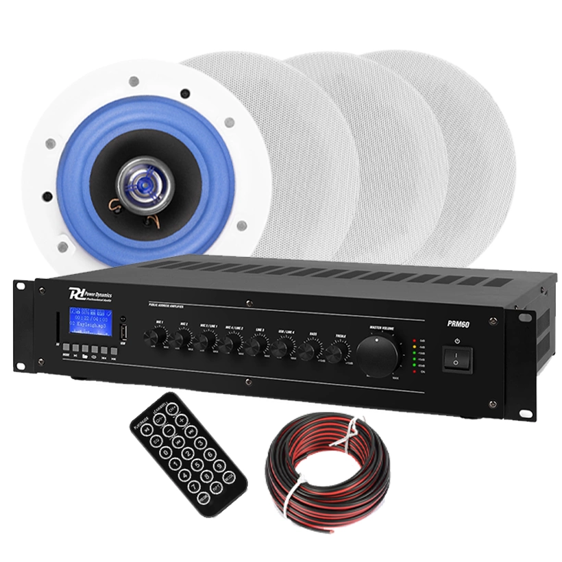 Profesjonalny komercyjny system głośników sufitowych o napięciu 100V, ze wzmacniaczem miksera bluetooth i kablem głośnikowym. Ten wstępnie skonfigurowany system nagłośnienia muzyki w tle jest idealnym rozwiązaniem dla wszystkich instalacji komercyjnych, w tym restauracji, barów, pubów, kawiarni, sklepów, domów, magazynów i biur.