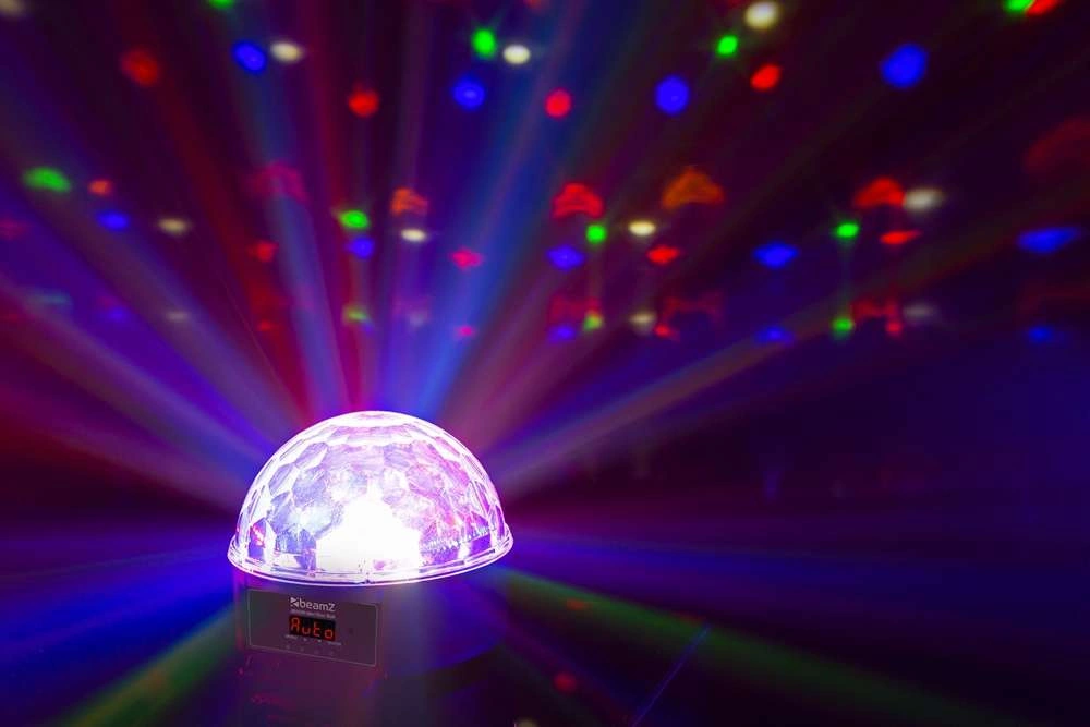 Z BeamZ JB90R nie musisz wiele robić, aby stworzyć atmosferę na imprezie. Lampa dyskotekowa działa całkowicie niezależnie, więc wystarczy podłączyć do zasilania. Mini Star Ball Jest wyposażony w pilota do łatwego ustawiania i wyboru programu. Wbudowany mikrofon pozwala również JB90R reagować na dźwięk, tworząc dynamiczny pokaz świetlny, idealny, gdy chcesz po prostu imprezować.