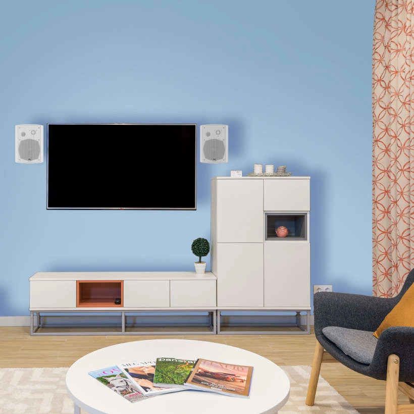 Zestaw głośników DS65MW można zainstalować bez żadnych problemów. Wolisz je powiesić? To też żaden problem. Zestaw głośnikowy jest wyposażony w uchwyty ścienne, dzięki czemu można je łatwo powiesić na ścianie, suficie itp. Nie ma znaczenia, czy zainstalujesz je poziomo czy pionowo, oba sposoby są możliwe.