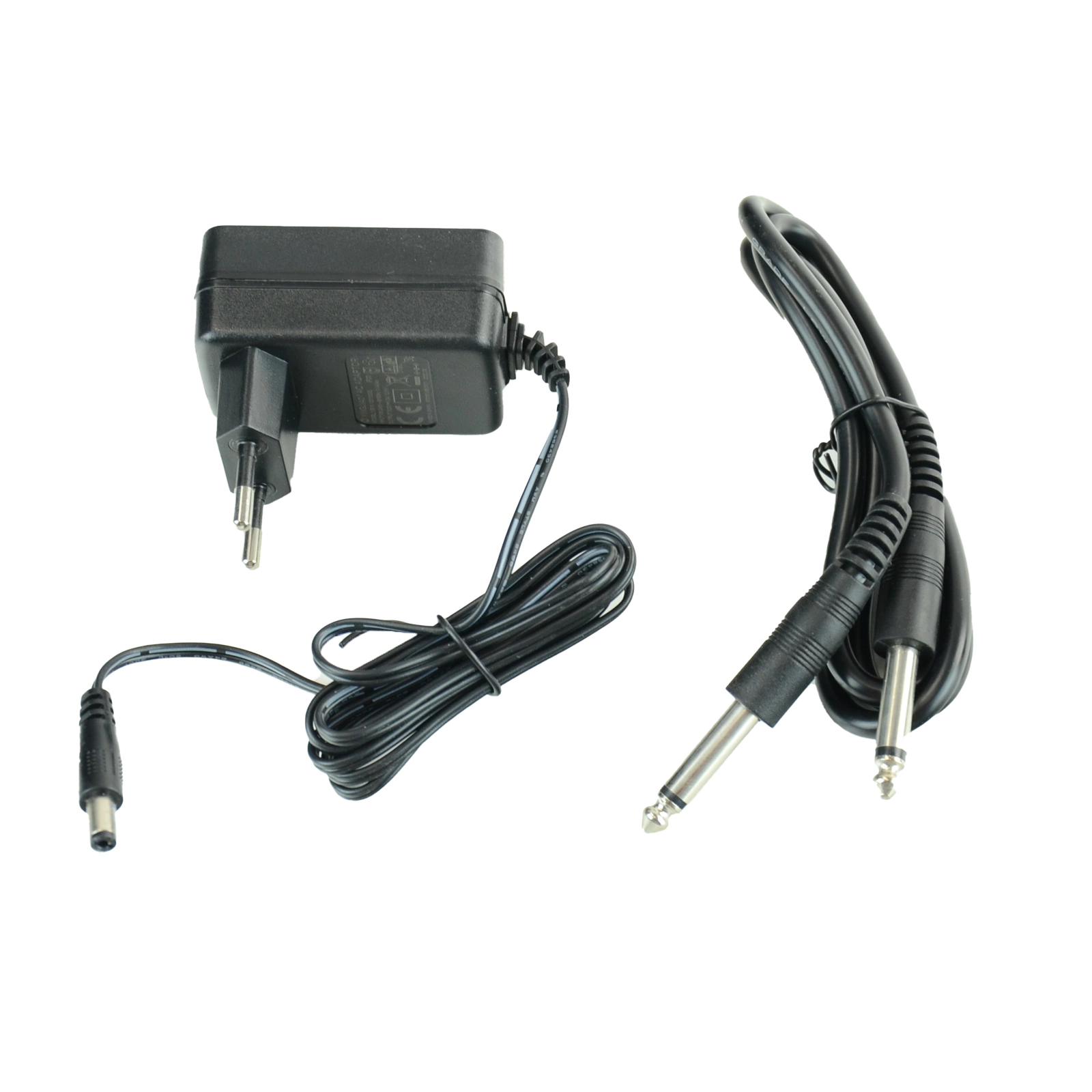 - Dostarczany z zasilaczem sieciowym i jednym przewodem typu jack 6,35 mm