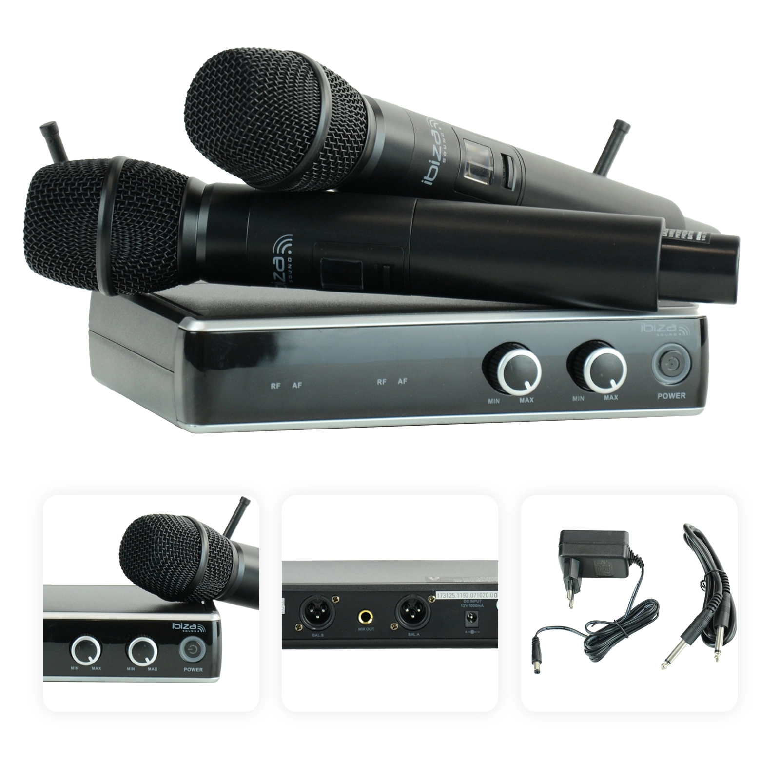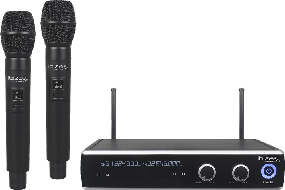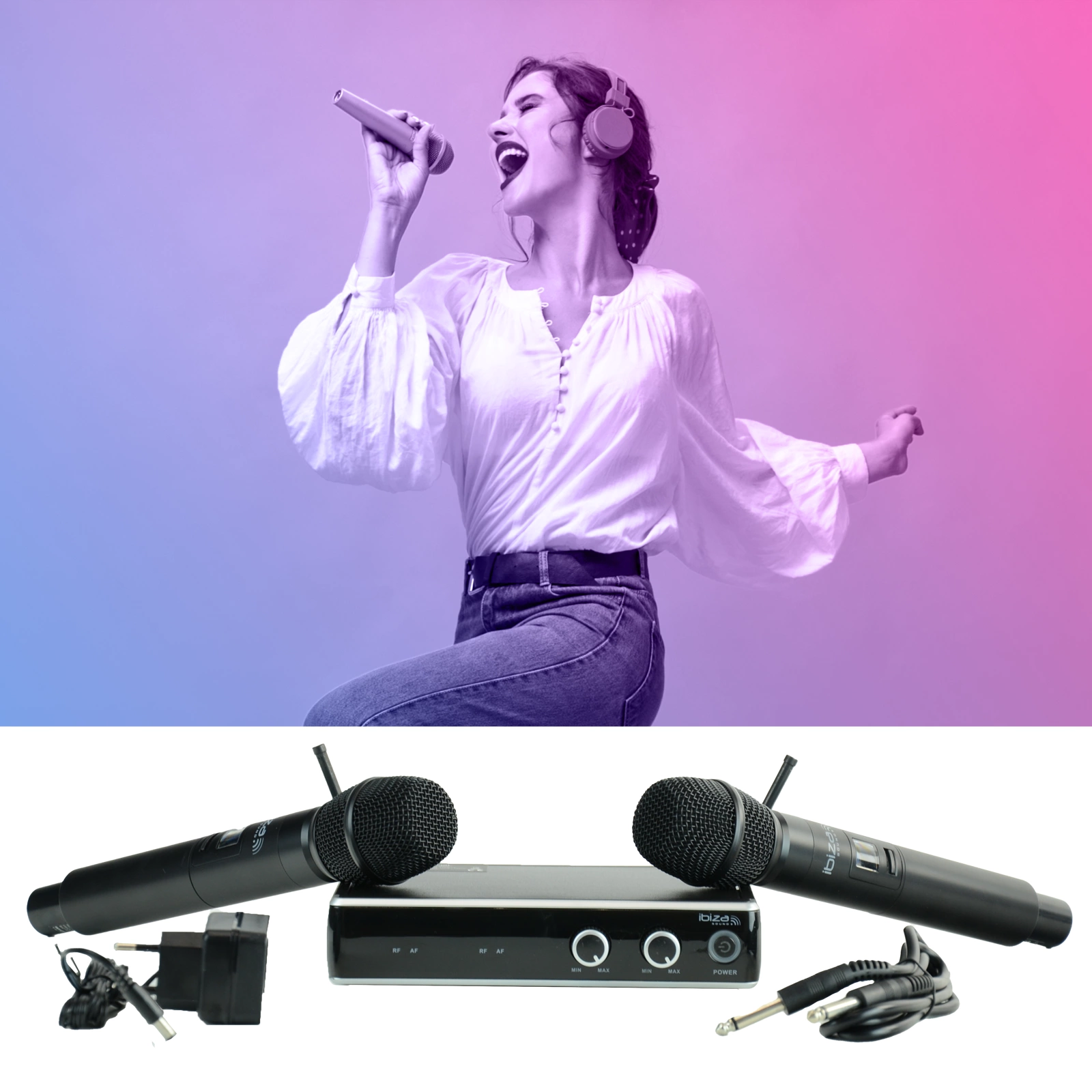 Podwójny odbiornik UHF ze stałymi częstotliwościami. Mikrofony idealnie nadają się do śpiewania i mowy.