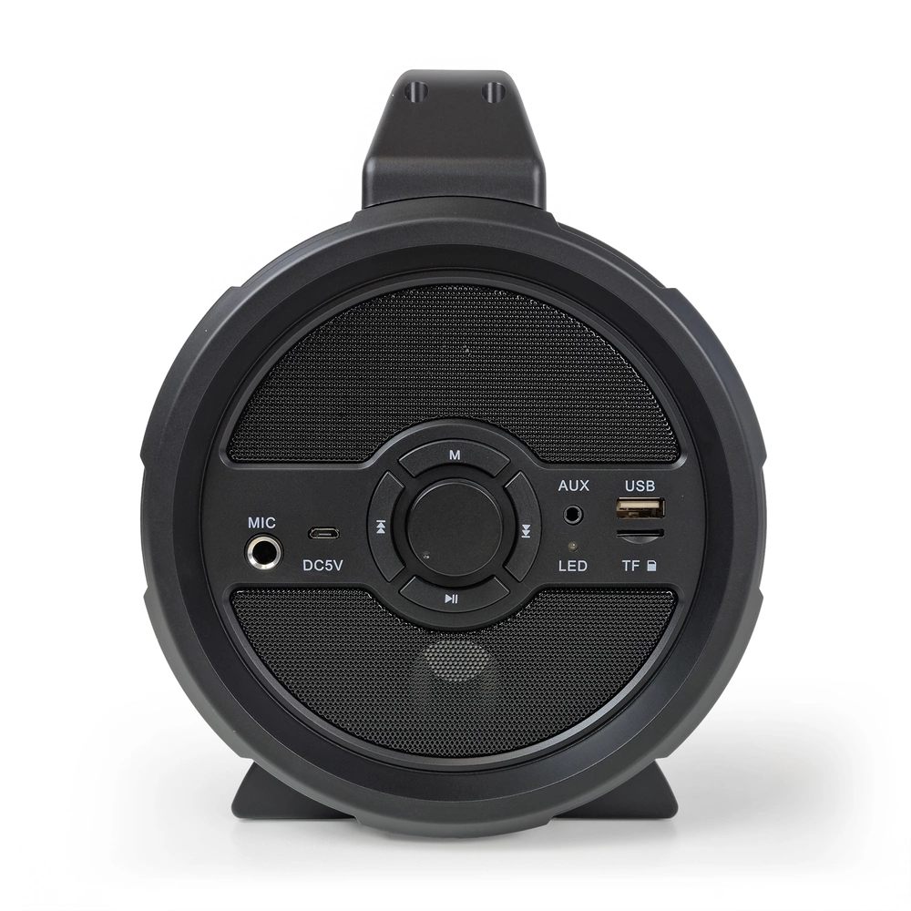 Wszechstronny, przenośny system audio z akumulatorem. Podłącz dostarczony mikrofon i przygotuj się na imprezę karaoke podświetloną przez głośnik przenośny.