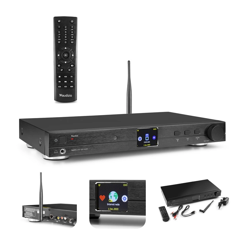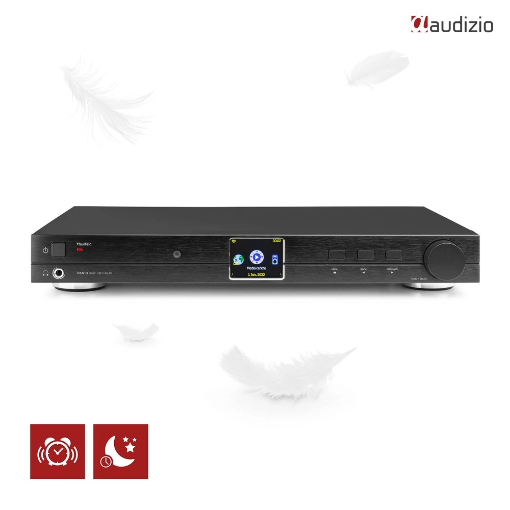 Tuner można łatwo zintegrować z istniejącym domowym systemem hi-fi, aby zapewnić dodatkowe źródła rozrywki audio, wystarczy podłączyć radio do istniejącego routera WLAN i uzyskać dostęp do ponad 26 000 internetowych stacji radiowych z całego świata, w tym lokalnych stacji radiowych. Nigdy więcej irytujących szumów i zniekształceń, radio Trento zapewnia czysty odbiór radiowy w Twoim domu lub biurze. Oprócz tunera internetowego, Trento integruje odtwarzacz multimedialny (serwer UPnP/ DLNA, który przesyła strumieniowo pliki audio do sieci), strumieniowanie BT (pliki audio wysyłane przez urządzenie wyposażone w BT), radio DAB+, tradycyjne radio FM, budziki oraz programowalny wyłącznik czasowy (od 15 do 180 minut w 8 krokach), aby wyłączyć radio, gdy zaśniesz.