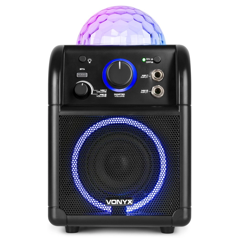 Vonyx SBS55B, zestaw karaoke z wbudowaną baterią, efektami świetlnymi i 2 mikrofonami
