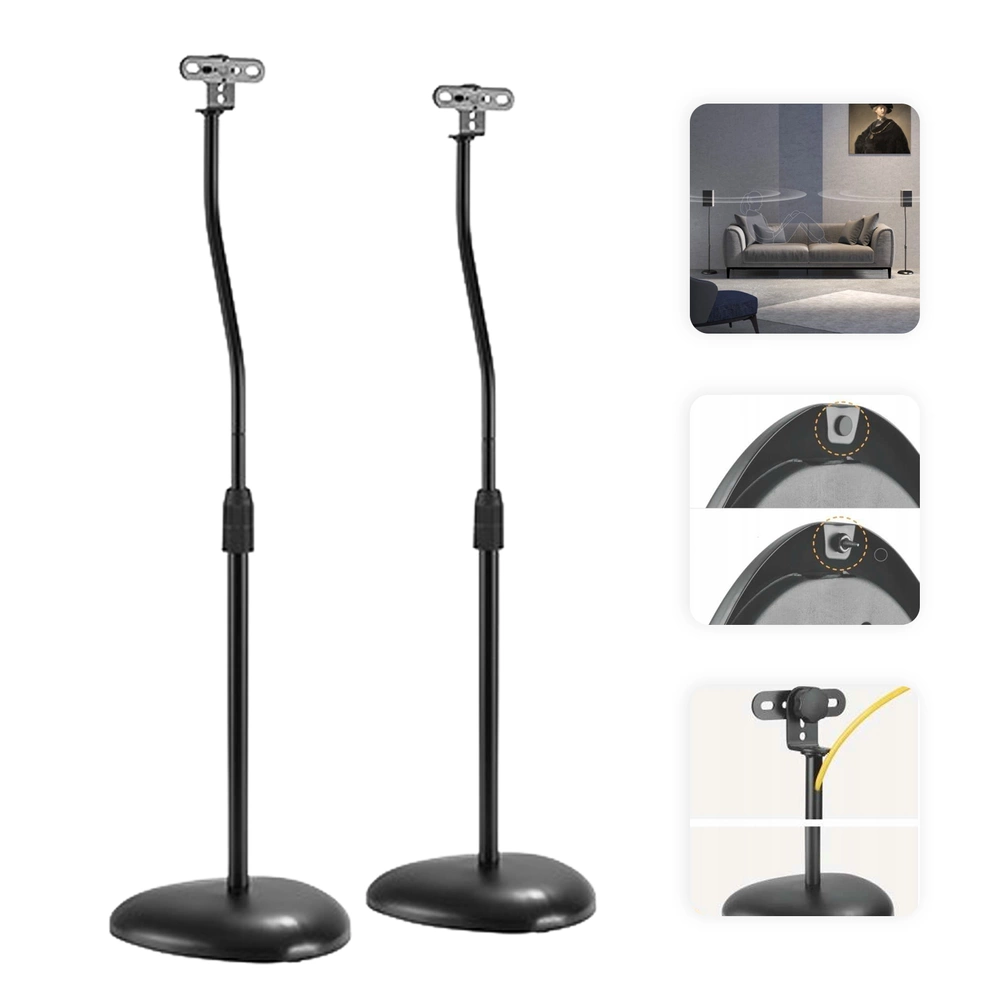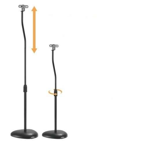 Nie masz miejsca na kolumny? Nie masz ochoty wiercić dziur w ścianie? Dzięki temu zestawowi składającemu się z dwóch stojaków pod kolumny, wszystko masz rozwiązane. Wytrzymałe i solidne stojaki podłogowe są uniwersalne dla głośników, kolumn o maksymalnej wadze 4,5kg. Stojaki można regulować na wysokość w zakresie od 78 do 105cm, dzięki czemu można ustawić je na idealnej wysokości odsłuchu. Stojaki są wyposażone w ciężką żeliwną stopę, dzięki czemu stoją stabilnie. Kabel można starannie poprowadzić w rurze, aby uzyskać wyjątkowo estetyczne wykończenie.