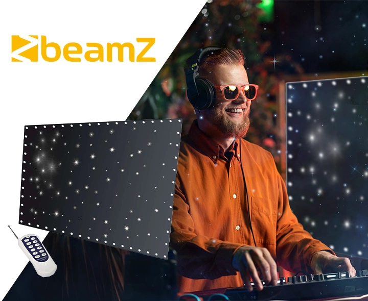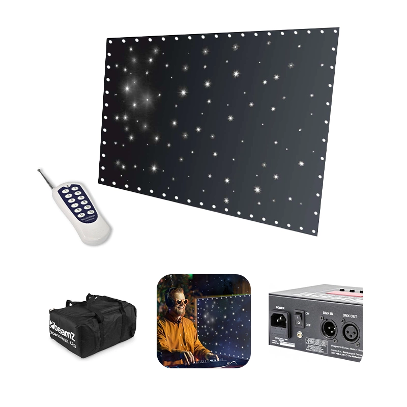 Ta kurtyna LED jest wykonana z wysokiej jakości materiału o niskim współczynniku odbicia i może być montowana do kratownicy lub statywu DJ-skiego. Opaski kablowe wielokrotnego użytku sprawiają, że idealnie nadaje się do mobilnych DJ-ów i artystów lub do użytku na scenie. Za pomocą dołączonego pilota możesz zmieniać ustawienia i jasność.