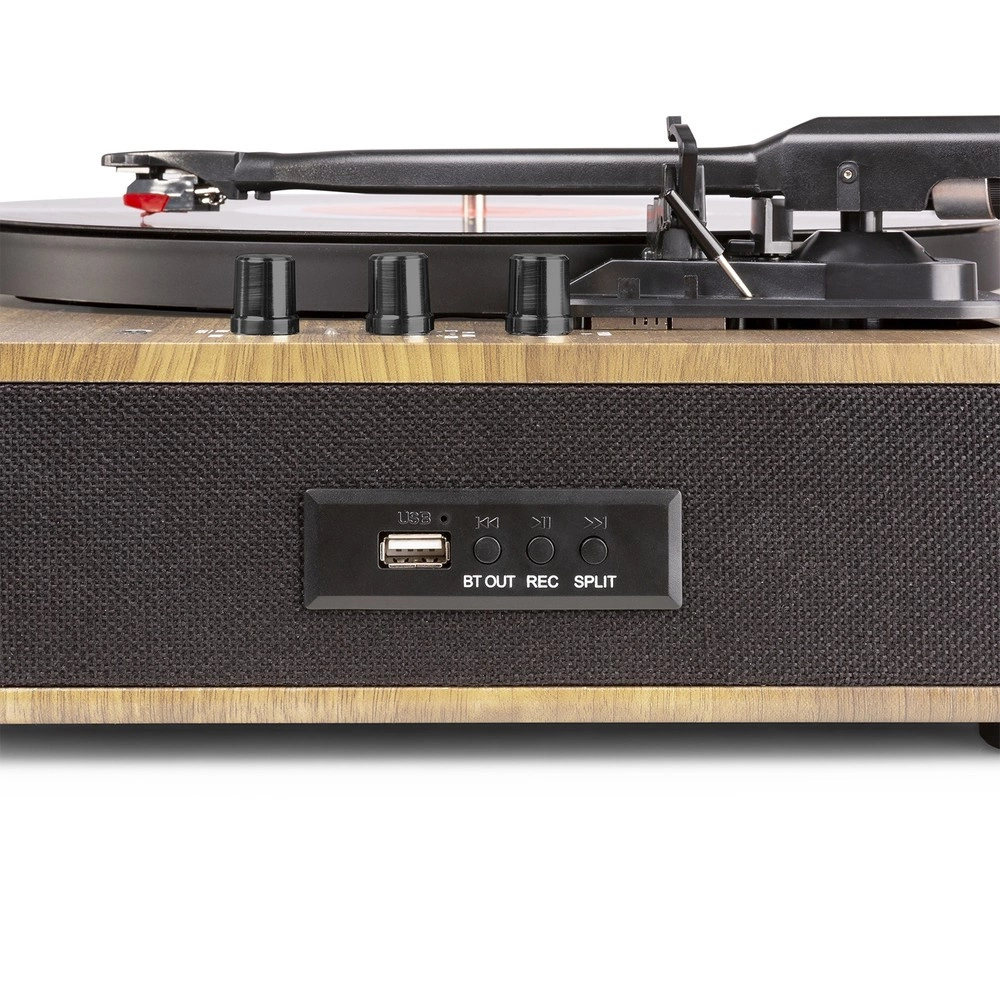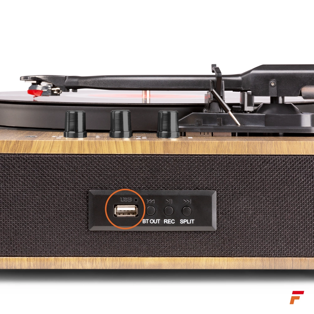 Gramofon Fenton RP162LW to wszechstronny gramofon z funkcją przesyłania strumieniowego BT i USB. Możesz samodzielnie przekonwertować winyl na plik cyfrowy poprzez bezpośrednie nagrywanie USB. Łączy się bezprzewodowo z głośnikami, słuchawkami i innymi urządzeniami wyposażonymi w technologię bezprzewodową BT lub z przewodowymi systemami audio i głośnikami zasilanymi. Dzięki wbudowanemu odbiornikowi BT, cyfrową muzykę można również bezprzewodowo przesyłać strumieniowo ze smartfonu, tabletu PC lub innego urządzenia kompatybilnego z BT i słuchać jej przez głośniki stereo. Ten wysokiej jakości gramofon ma solidną, ręcznie wykonaną, drewnianą obudowę i jest wyposażony w zdejmowaną przezroczystą osłonę przeciwpyłową.