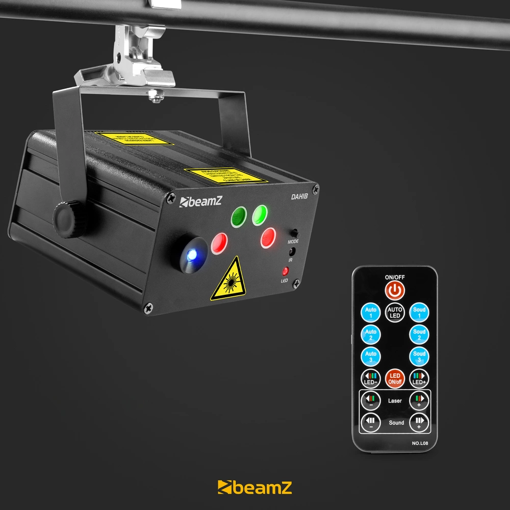 BeamZ Dahib, laser imprezowy z czerwonym i zielonym laserem + niebieska dioda LED