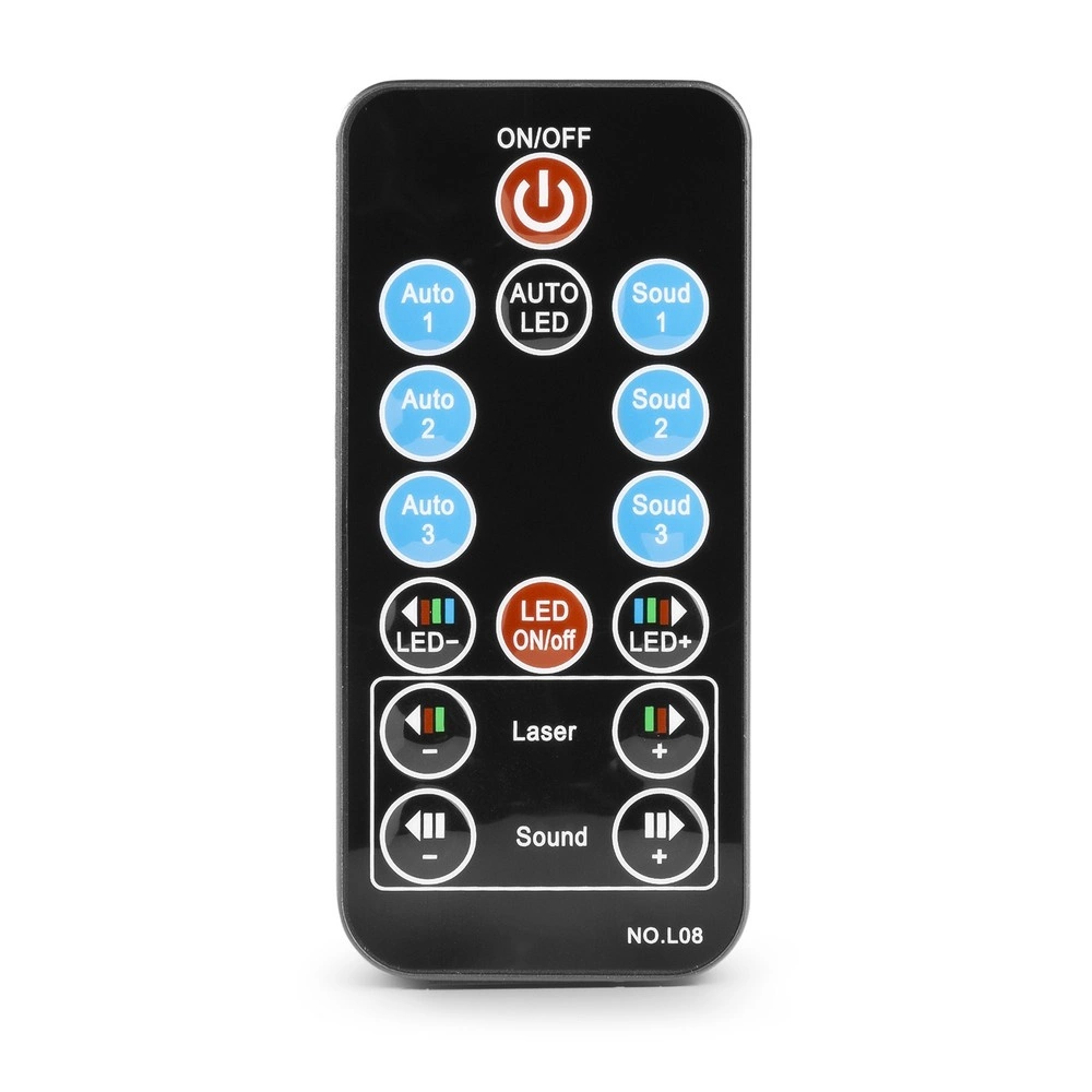 Nie musisz być technikiem, aby cieszyć się możliwościami lasera BeamZ Dahib. Za pomocą dołączonego pilota można łatwo wybrać program lub aktywować jeden z trybów aktywacji dźwiękiem. Dzięki temu Dahib może pracować całkowicie niezależnie i nie musisz się o to martwić, dzięki czemu możesz w pełni skupić się na swojej imprezie i gościach.