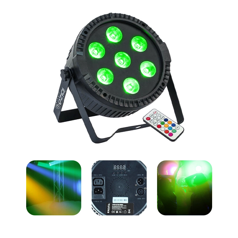 Obudowa ABS i podwójna podstawa sprawiają, że reflektor jest urządzeniem łatwym do montażu na kratownicy stelaża oraz sprawdzi się jako wolnostojący, stabilny efekt.