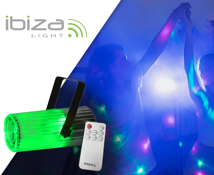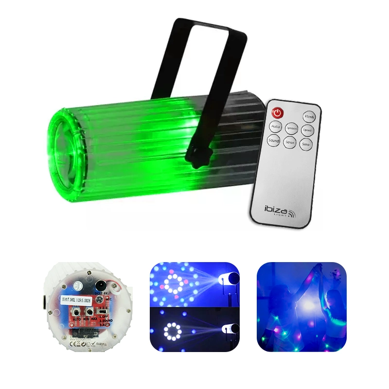 Sprzęt generuje jasne, dynamiczne wzory, którymi można sterować poprzez załączonego pilota lub ustawić przełącznikami na obudowie reflektora. Ten efekt to idealne rozwiązanie dla amatorów plenerowych imprez - urządzenie posiada wbudowany akumulator. Możemy więc zabrać go praktycznie w każde miejsce, nawet tam gdzie nie ma dostępu do zasilania. Dodatkowo cały reflektor jest w przezroczystej obudowie co powoduje, że samo urządzenie również świeci się wieloma kolorami.