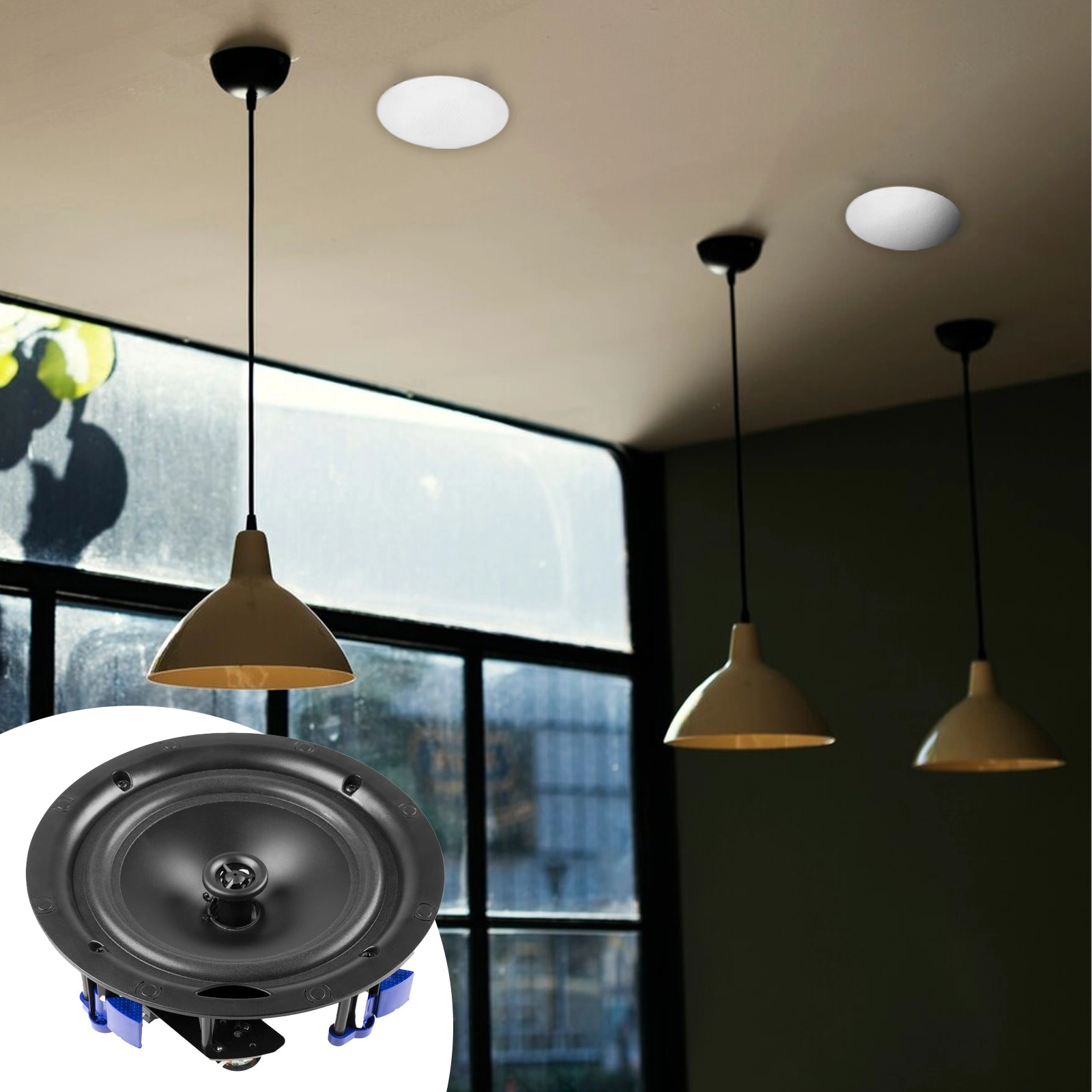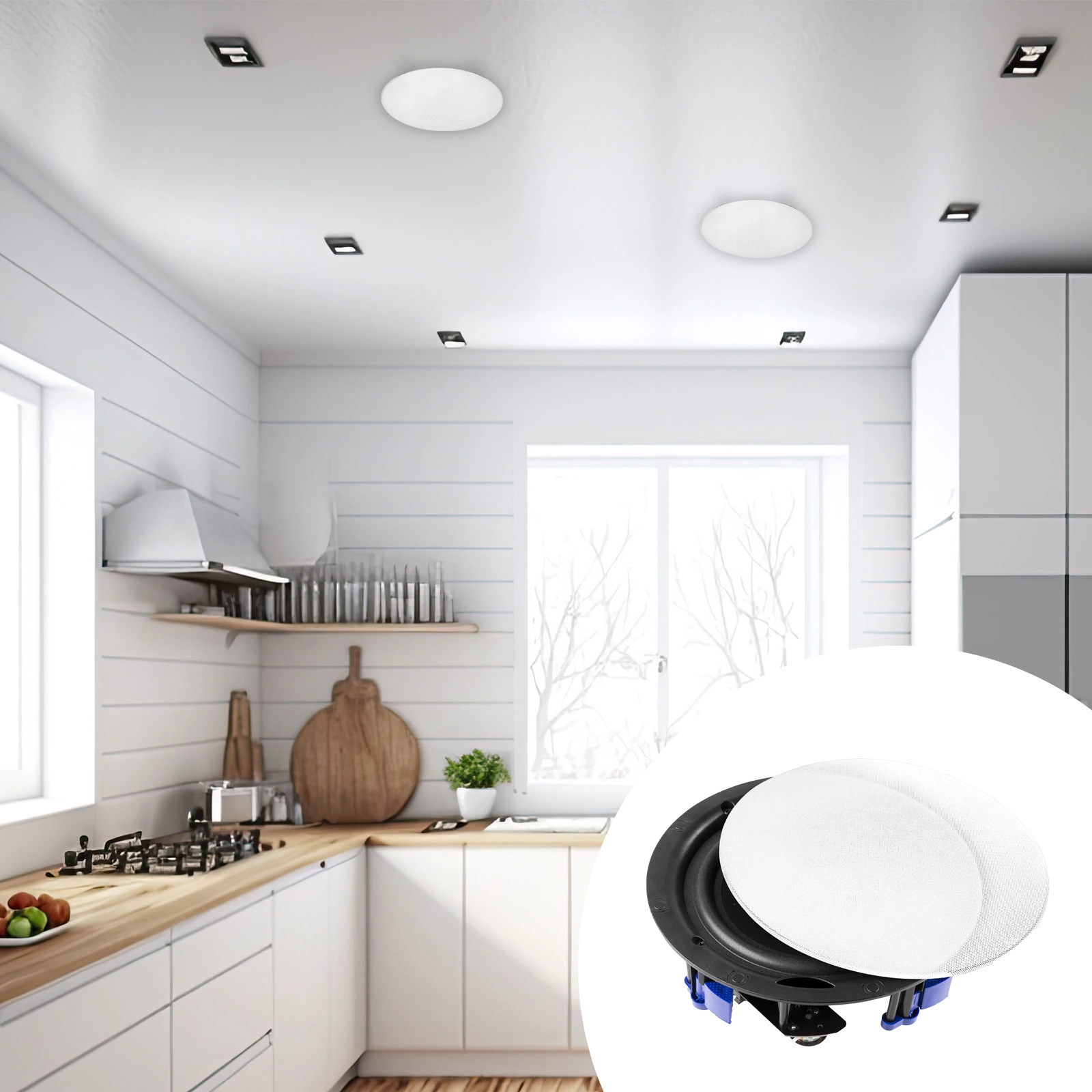 Głośnik sufitowy posiada eleganckie białe wykończenie, które ładnie komponuje się z każdym pomieszczeniem, nie tracąc przy tym estetycznego wyglądu pomieszczenia. Po zainstalowaniu głośnika i podłączeniu go z powrotem do odpowiedniego wzmacniacza mocy zapewnia on wysokiej jakości dźwięk, a jednocześnie trudno go zauważyć w pomieszczeniu, w którym jest zainstalowany.
